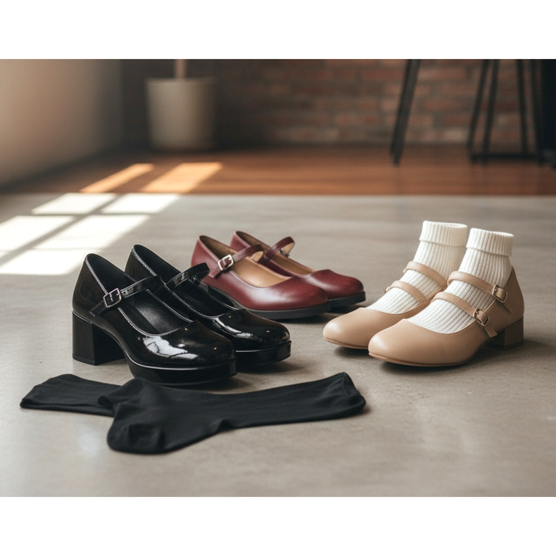 Winter erfordert wärmere Versionen. Mary Janes aus Leder mit dickerer Sohle und Wollsocken eignen sich gut für den Innenbereich. Für zusätzliche Wärme sorgen Modelle mit Fellfutter.
