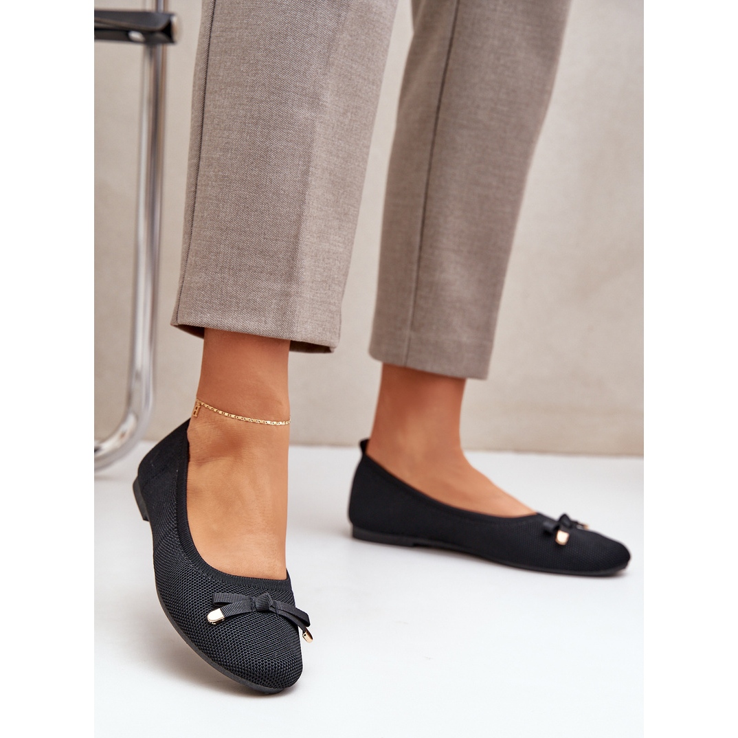 Details: Maschen -Ballerinas mit einem schwarzen Bug