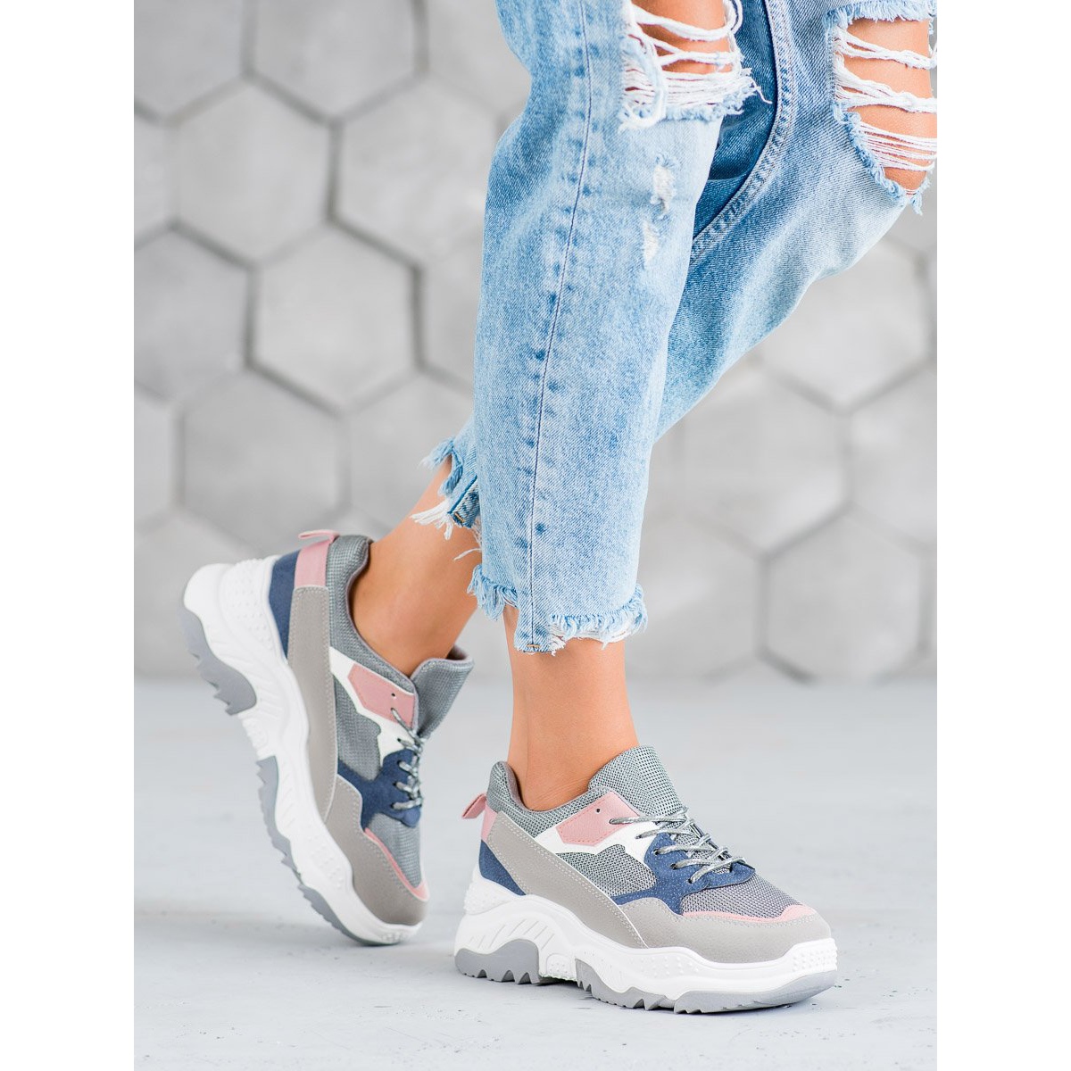 Die mehrfarbigen SHELOVET-Sneaker sind die perfekte Wahl für Frauen, die jeden Tag Komfort mit einem modischen Look kombinieren möchten. Diese stylischen Sneaker fallen durch die einzigartigen, mehrfarbigen Streifen in verschiedenen Breiten auf, die jedem Styling Energie und Frische verleihen. Die vorherrschenden Farben Weiß, Grau und Blautöne machen sie äußerst universell und passen perfekt zu aktuellen Trends.