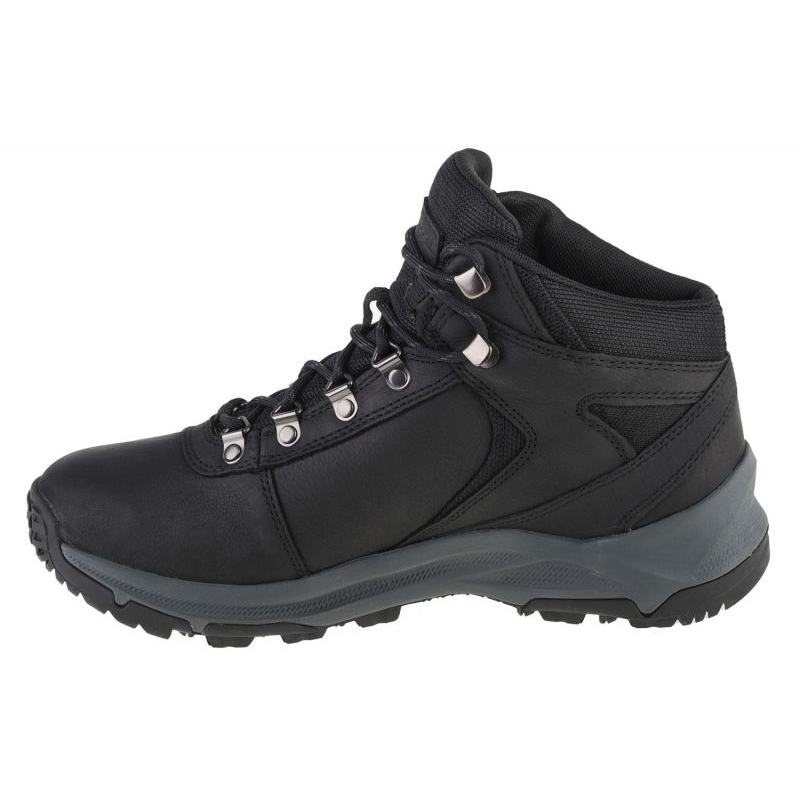 Merrell Erie Mid LTR WP J500151 Schuhe - Schwarzer Trekking in einer schwarzen Ausgabe, die den klassischen Stil mit Funktionen auf dem Weg und unter städtischen Bedingungen kombiniert. Der hohe Schnitt mit Spitze sorgt für einen stabilen Würfelhalter, und eine dicke Gummisohle mit klarem Profil garantiert die Haftung auf einer abwechslungsreichen Oberfläche.