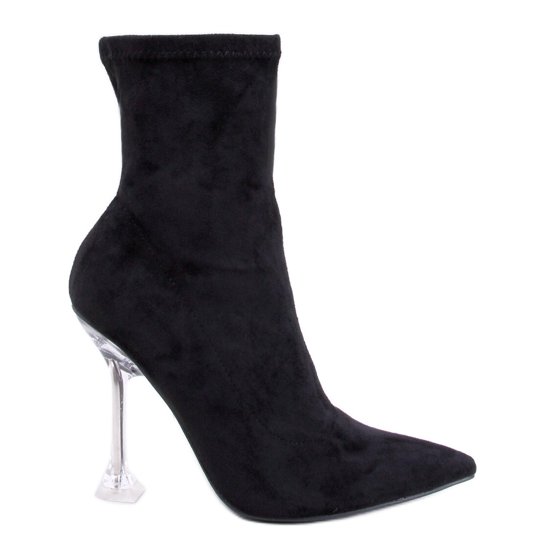 Elegant, Suede -Frauen -Merris -Stiefel in Schwarz ist ein Vorschlag für Liebhaber von anspruchsvoller Einfachheit mit effektivem Akzent. Die schlanke, Mandelnase und ein hoher, transparenter Stift (11,5 cm) verlängern die Beine optisch und ziehen aus.