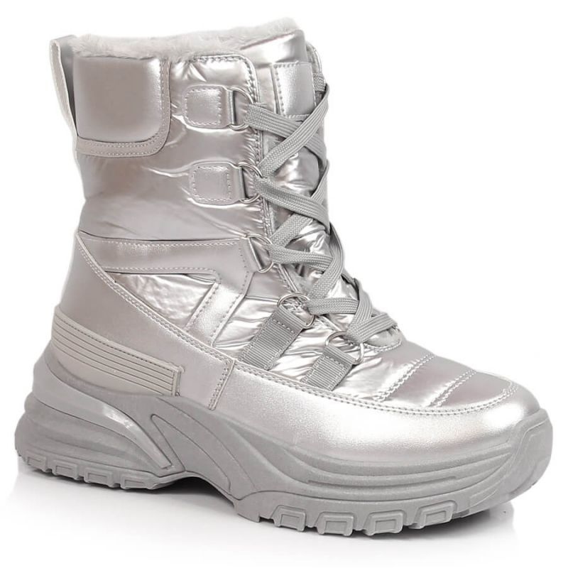 Moderne, modische Frauenschnee -Stiefel von Potocki, die einen effektiven, metallischen Look mit praktischen Eigenschaften für den Winter kombinieren. Die hohe obere und isolierte Auskleidung sorgt für den thermischen Komfort, und der Schnürverschluss garantiert eine gute Passform zum Bein. Die universelle Silberfarbe macht die Schuhe perfekt zu vielen Winterstilisierungen - vom alltäglichen Stadt -Look bis hin zu mehr Ausgangssets.