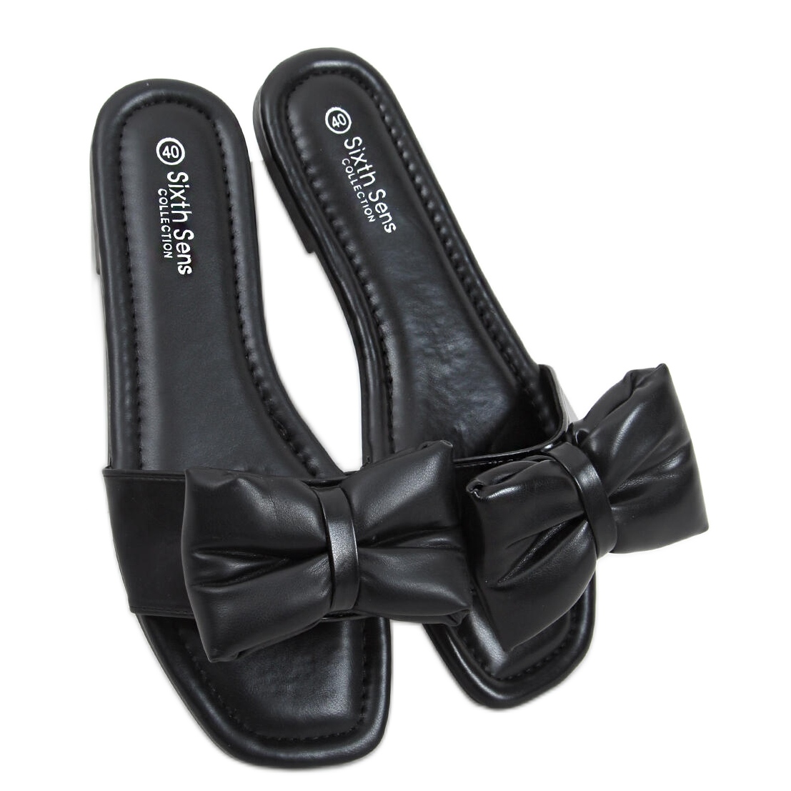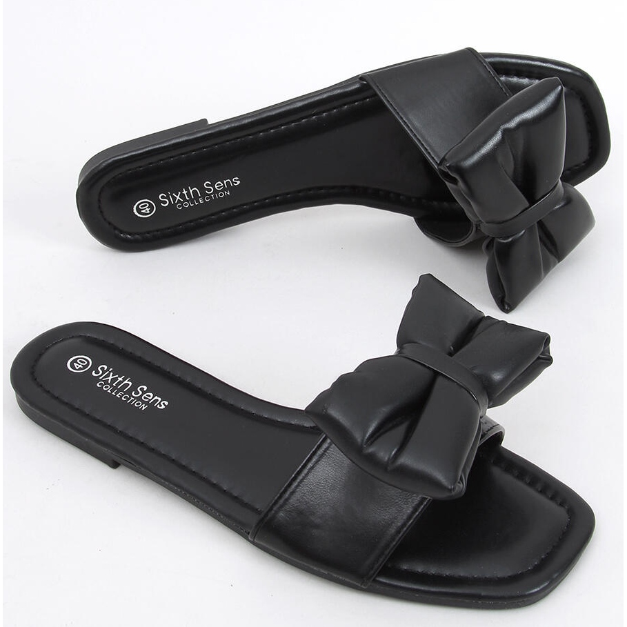Inna marka Mili Schwarze Hausschuhe mit Schleife