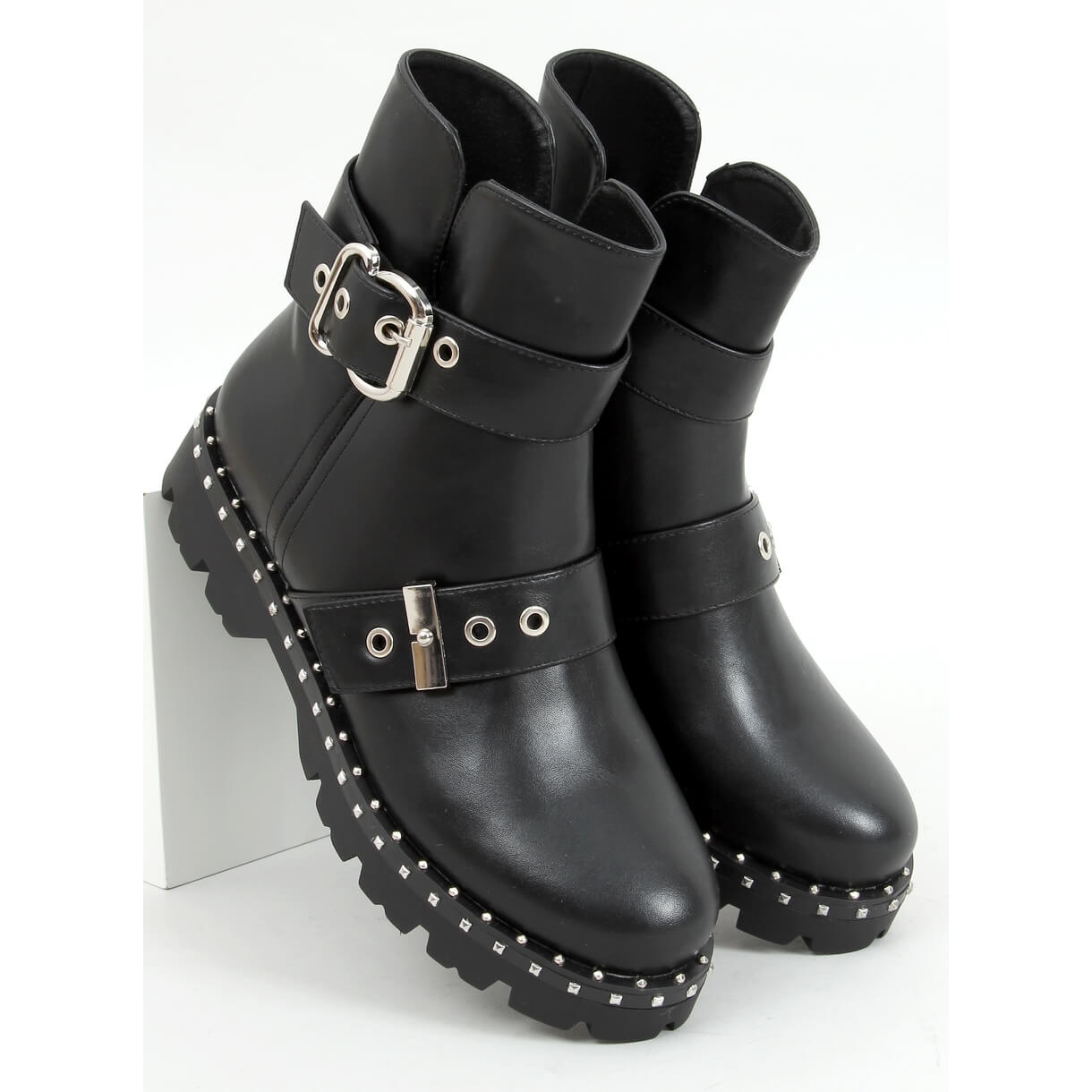 Inna marka Militärstiefel mit Nieten in Sopranschwarz
