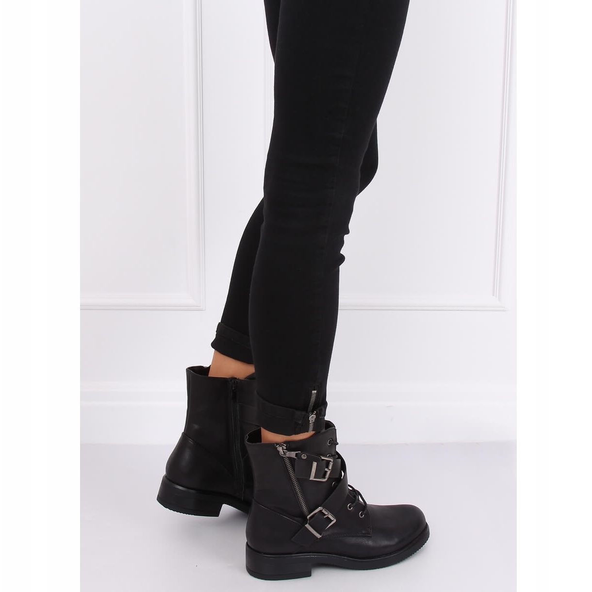 Die schwarzen Militär-Arbeiterstiefel C581 sind die perfekte Wahl für Frauen, die Wert auf Stil und Komfort legen. Diese flachen Schnürstiefel passen perfekt zu aktuellen Modetrends und kombinieren klassisches Design mit modernen Akzenten. Gekreuzte Träger mit Schnallen verleihen ihnen Charakter und machen sie gleichzeitig universell – perfekt für das Alltags-Styling.