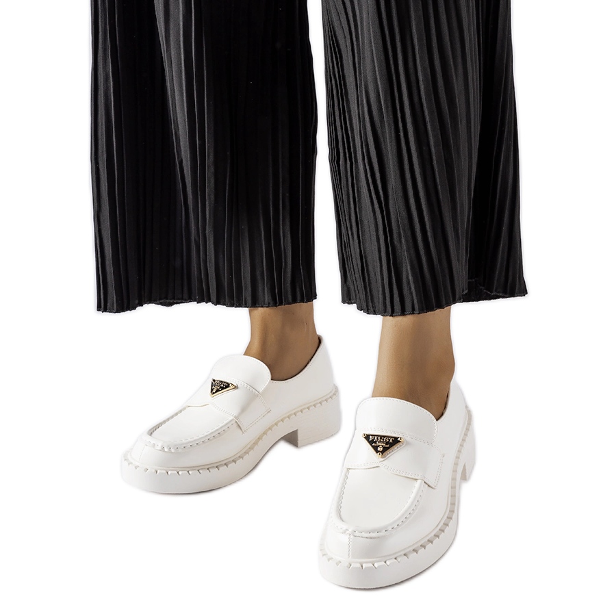 Moderne, leichte Slipper in einer universellen, weißen Folge - ideal für die junge Generation, die Komfort und modisches Erscheinungsbild schätzt. Der Gleitschnitt mit einem runden Zeh sorgt täglich Komfort, und das minimalistische Design kann leicht sowohl in lässige als auch in etwas formellere Stylisationen integriert werden.