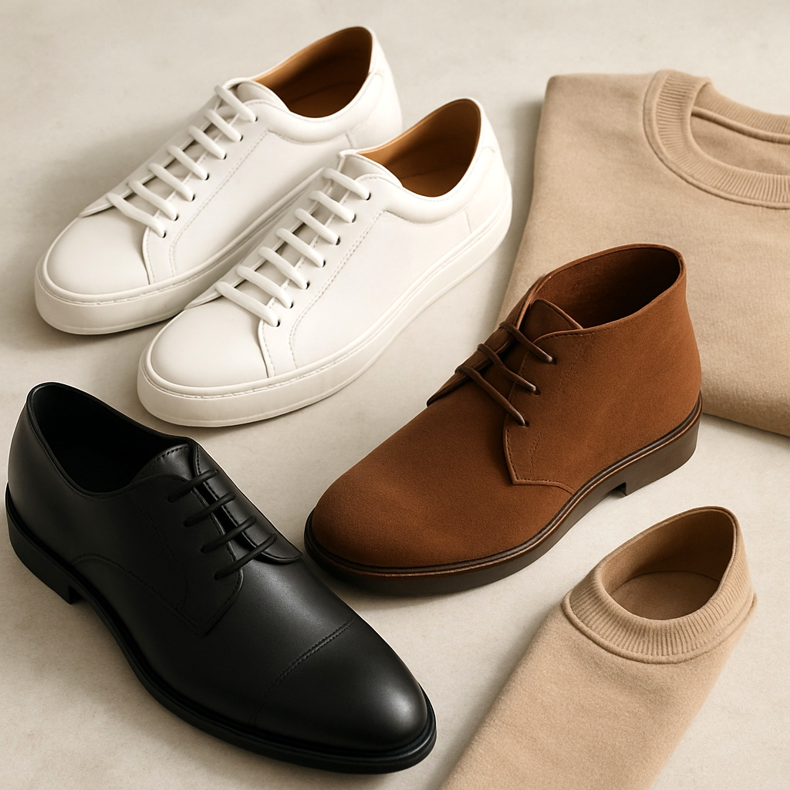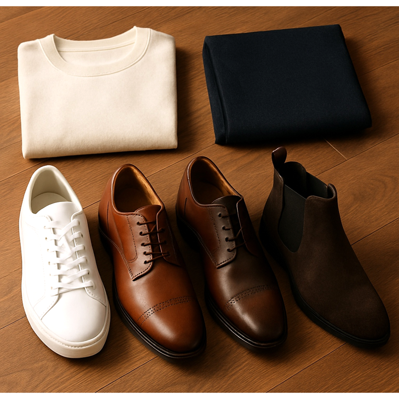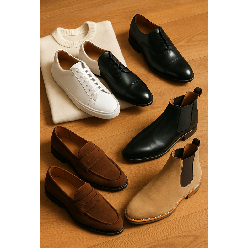 Wählen Sie beim Aufbau einer minimalistischen Schuhgarderobe 3–5 Paar in neutralen Farben, hoher Qualität und klassischem Design. Das reicht für jeden Anlass und hält jahrelang.