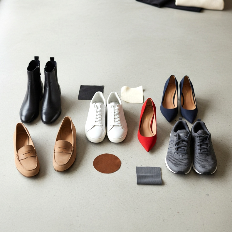 Optional: Sportschuhe fürs Training, elegante High Heels für besondere Anlässe, bequeme Gummistiefel für regnerische Tage.