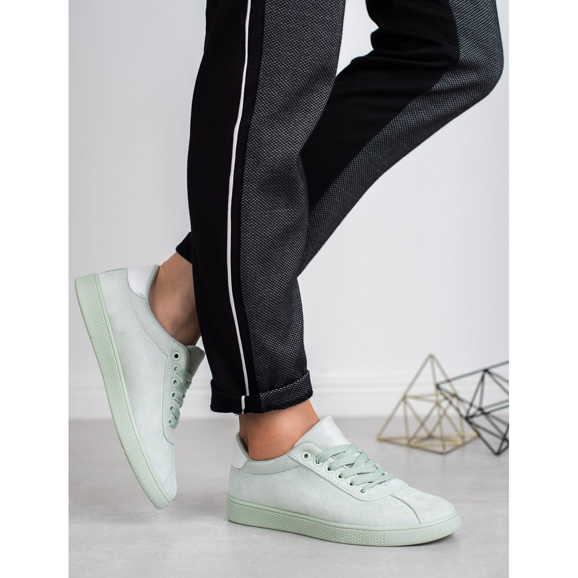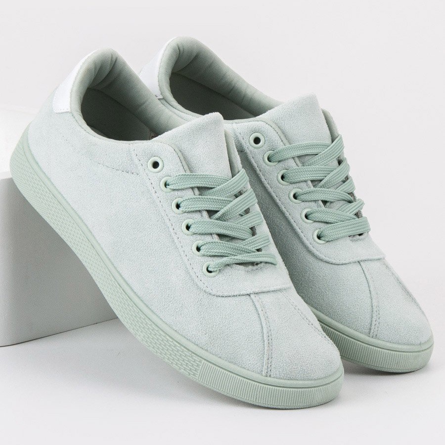 Entdecken Sie eine neue Dimension von Komfort und Stil mit mintgrünen Schnürschuhen von Ideal Shoes. Diese eleganten Sneaker aus hochwertigem Wildlederimitat vereinen modisches Design und Tragekomfort und eignen sich perfekt für den täglichen Gebrauch. Dank der flachen, 2 cm dicken Gummisohle fühlen sich Ihre Füße bei jedem Anlass leicht und bequem an.