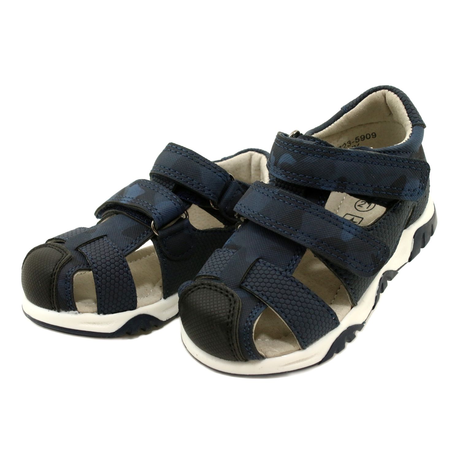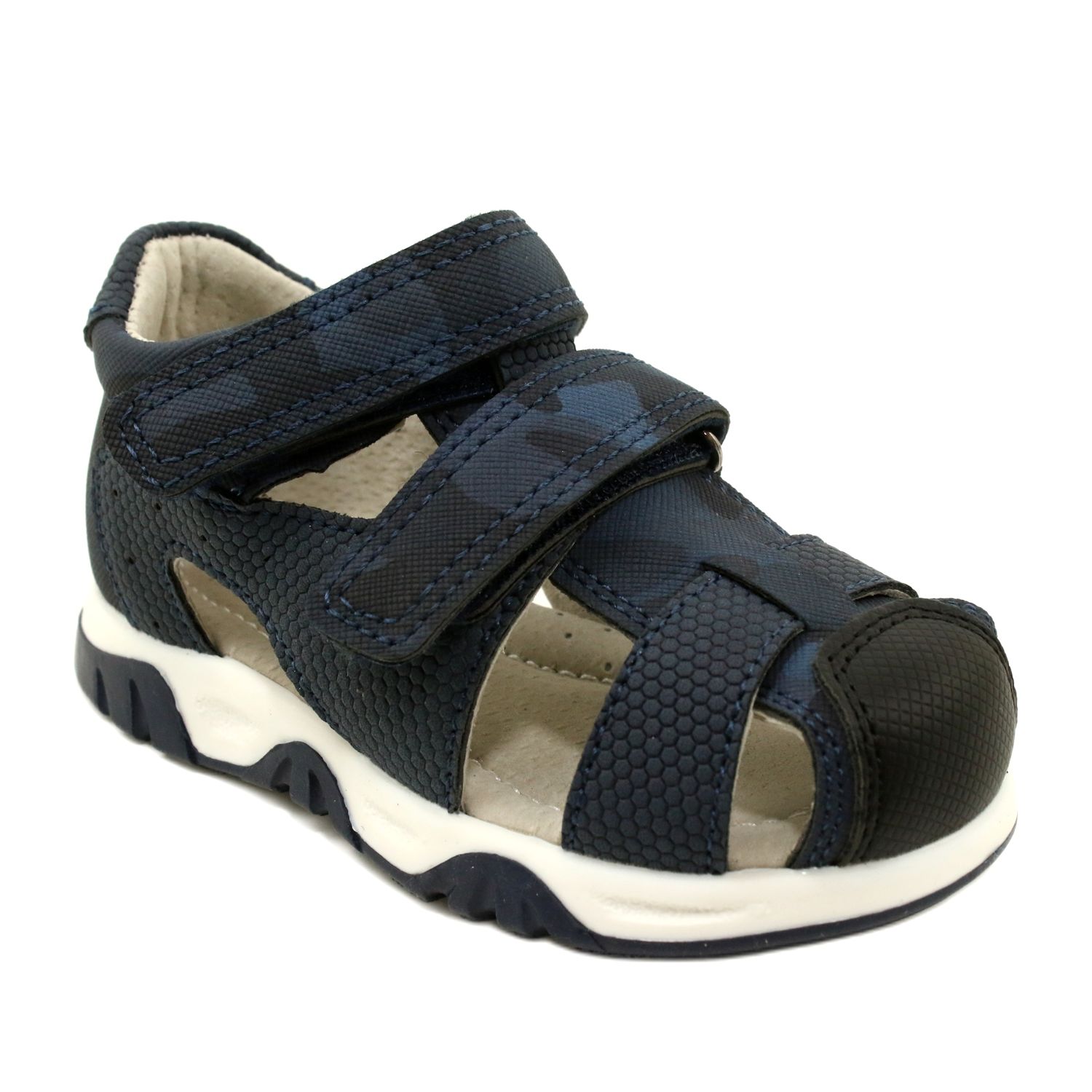 Sichere, komfortable und stilvolle Sandalen für kleine Jungen, die sowohl täglich als auch besonderen Anlässen hervorragend eignen. Die dunkelblaue Farbe mit zartem Camo und schwarzem Accessoires verleiht ihnen einen universellen, modischen Look, und das nachdenkliche Design bietet den ganzen Tag aus Komfort.
