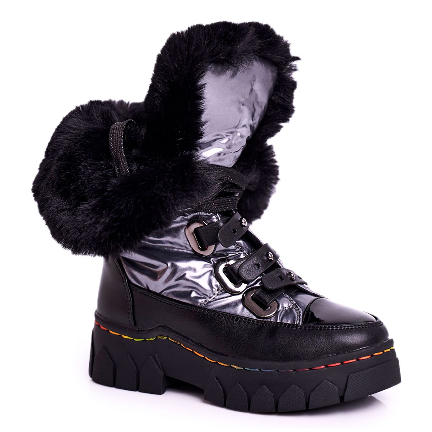 Apawwa Apawwa Mit Fell isolierte Schneestiefel für Kinder Schwarz und Grau Turismo