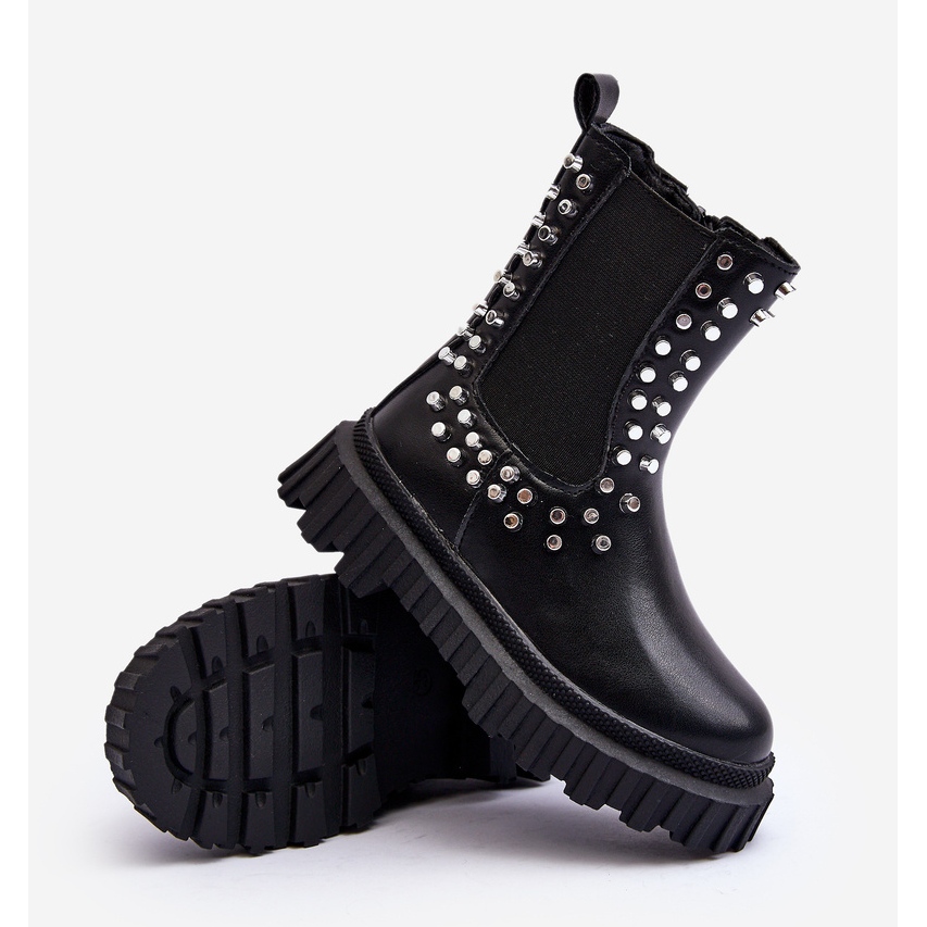 Details: Mit Strasssteinen verzierte Mädchen-Chelsea-Stiefel, schwarze Adelie