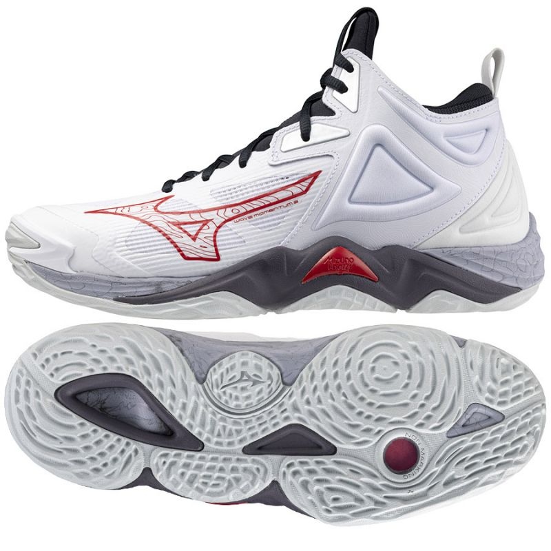 Wave Momentum 3 Mid -Schuhe sind eine ideale Wahl für vielseitige Spieler, insbesondere für diejenigen, die sich auf das Spiel in der mittleren Position spezialisiert haben. Dank des erhöhten Designs bietet der Knöchel zusätzliche Unterstützung in dem Gebiet, was die Sicherheit während der Landung erhöht.