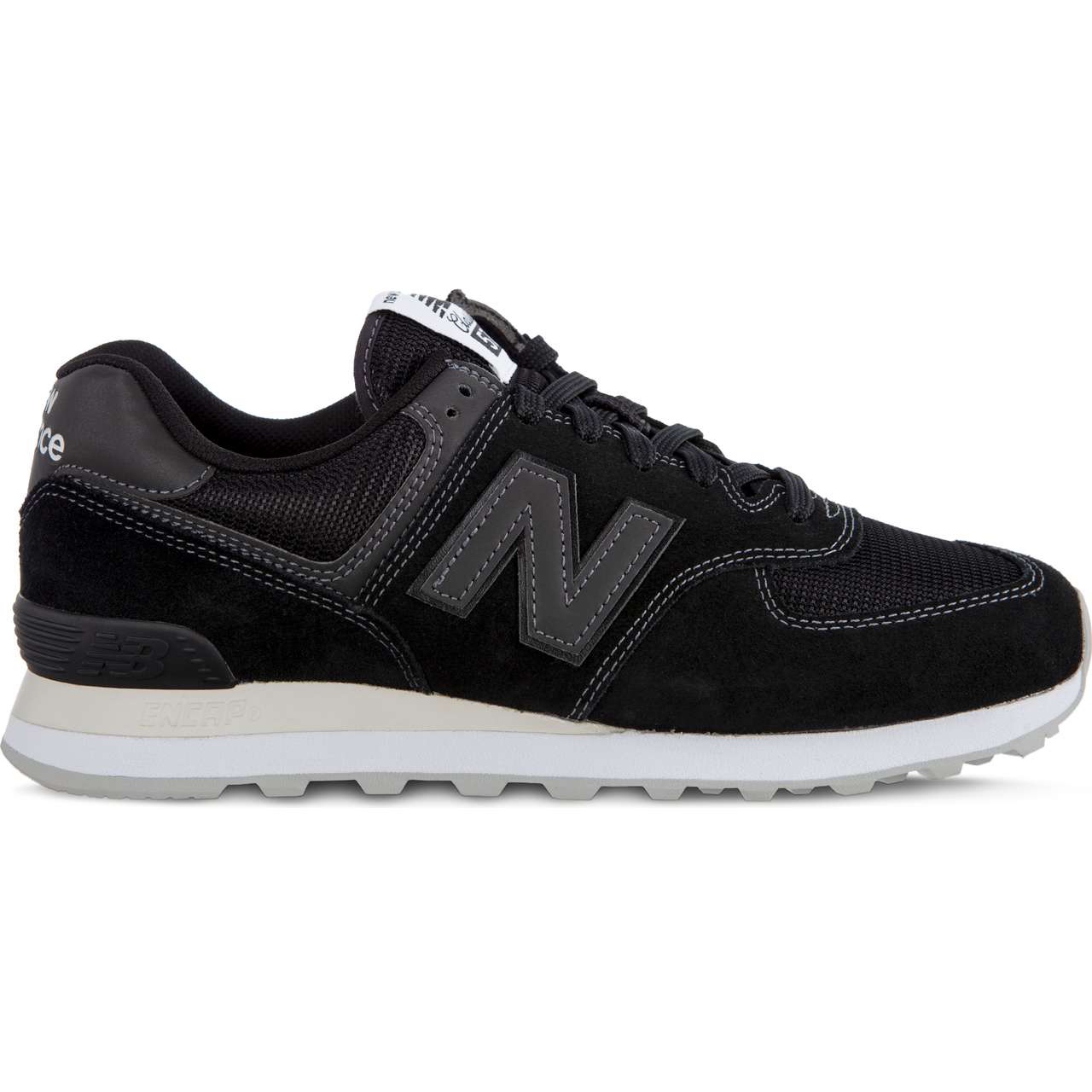 New Balance ML574ETA Black – klassische Herren-Sneaker, die zeitloses Design mit alltäglichem Komfort verbinden. Schwarze Halbschuhe mit Obermaterial aus Wildleder mit luftigen Mesh-Einsätzen sorgen für einen eleganten und zugleich sportlichen Look, der sowohl zu urbanen Styles als auch zu legeren Anlässen gut passt.
