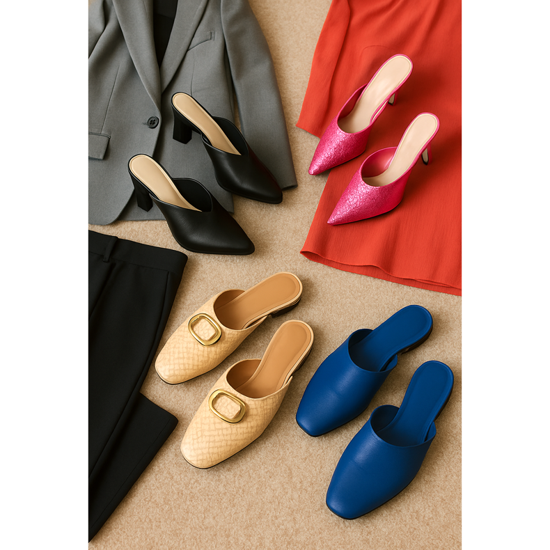 Die Universalität der Muscheln lässt sie in verschiedenen beruflichen Situationen arbeiten. Wählen Sie für wichtige Geschäftstreffen klassische Muscheln auf einer stabilen Ferse in einer gedämpften Farbe - schwarze Ledermaultiere mit einem zarten Spitz verleihen jeder Stylisierung Professionalität. Während der Präsentation, wenn Sie viel stehen müssen, stellen Sie Muscheln auf einer niedrigeren Ferse oder Plattform auf, die Stabilität und Komfort gewährleistet. Jeden Tag im Büromuscheln auf einer flachen Sohle oder einer kleinen Ferse sind großartig - Sie können sich mehr Farbe oder sanfte Dekorationen leisten. Networking -Events sind eine Gelegenheit, Ihren Stil zu zeigen - Maultiere mit interessanten Details wie Metallklemmen oder geflochtenen Elementen werden ein großartiger Gesprächsstarter sein. Für das Unternehmen nach der Arbeit können Sie mutigere Modelle auswählen - Muscheln auf einer höheren Ferse, mit Pailletten oder in intensiven Farben. Denken Sie an das Ersatzpaar Schuhe im Büro - wenn die Maultiere an einem langen Tag unangenehm sind, können Sie sie ändern. Es lohnt sich auch, ein Schuhpflege -Kit in der Schreibtischschublade zu haben, damit die Maultiere immer einwandfrei aussehen.