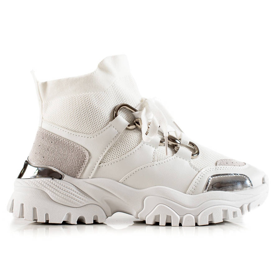 Entdecken Sie Eleganz und Komfort in einem – wir präsentieren TRENDI Fashion Sneakers in Weiß, Silber und Grau, die perfekt zu aktuellen Schuhtrends passen. Diese hohen Sportschuhe sind eine ideale Wahl sowohl für den täglichen Gebrauch als auch für Frühlings- oder Herbstspaziergänge.