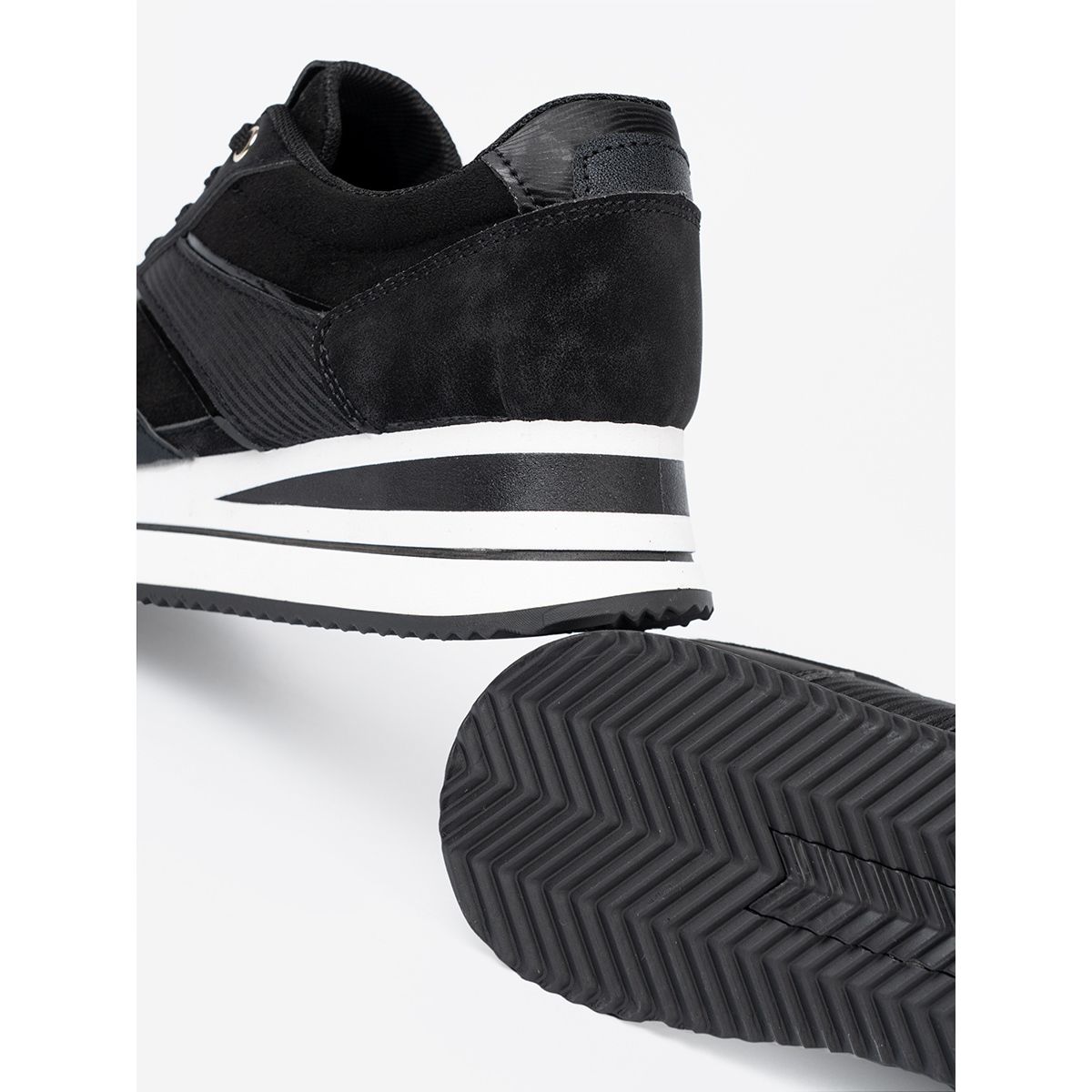 Details: Shelvt Moderne schwarze Turnschuhe mit glänzenden Einsätzen