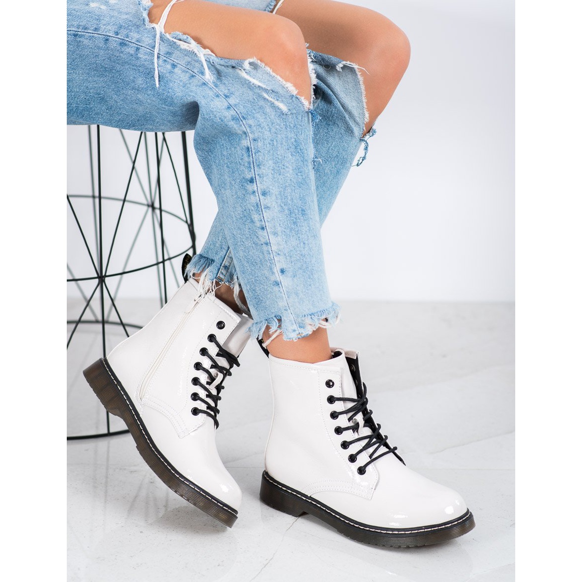 Diese weißen Arbeiterstiefel von Evento sind die perfekte Wahl für Frauen, die Wert auf einen modischen Look und Alltagskomfort legen. Ergänzen Sie Ihre Garderobe und kreieren Sie einzigartige Styles, die Aufmerksamkeit erregen!