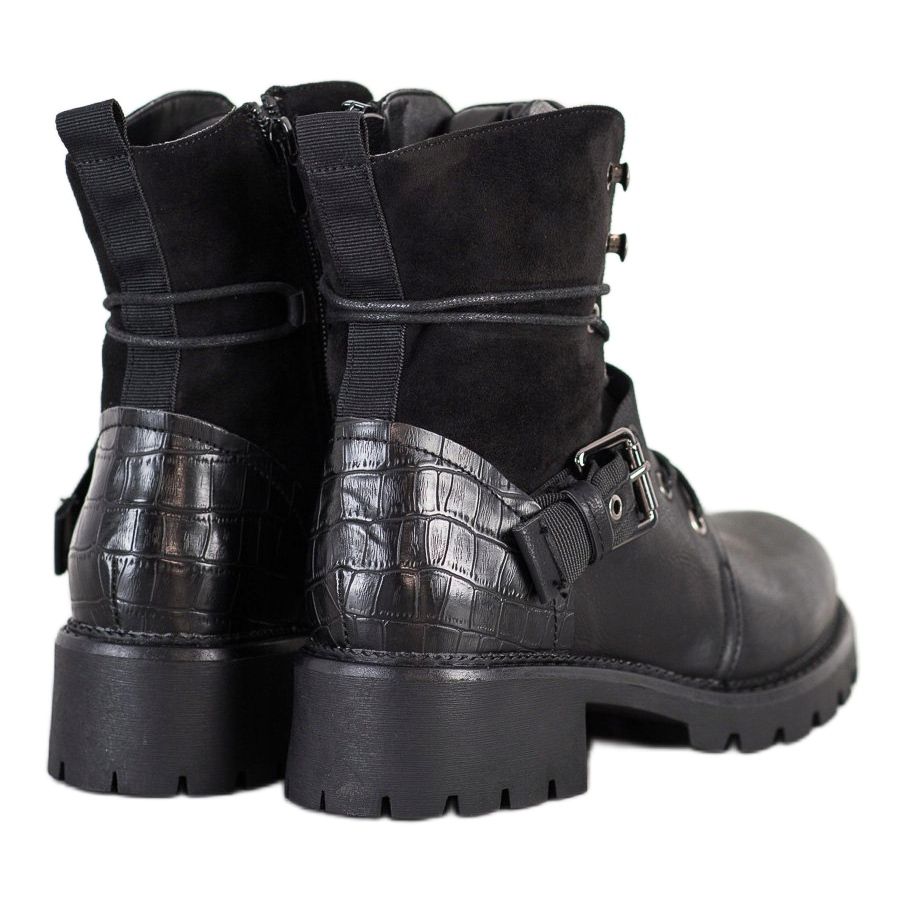 Entdecken Sie Mode und Komfort in einem dank der schwarzen Arbeiterschuhe der Marke Kayla! Diese stilvollen Stiefeletten folgen den neuesten Trends und kombinieren lässigen und rockigen Stil, was sie zu einer perfekten Wahl für die Herbst-/Wintersaison macht.