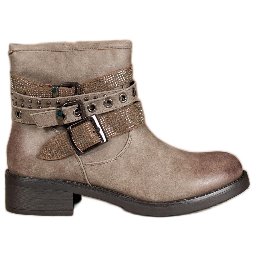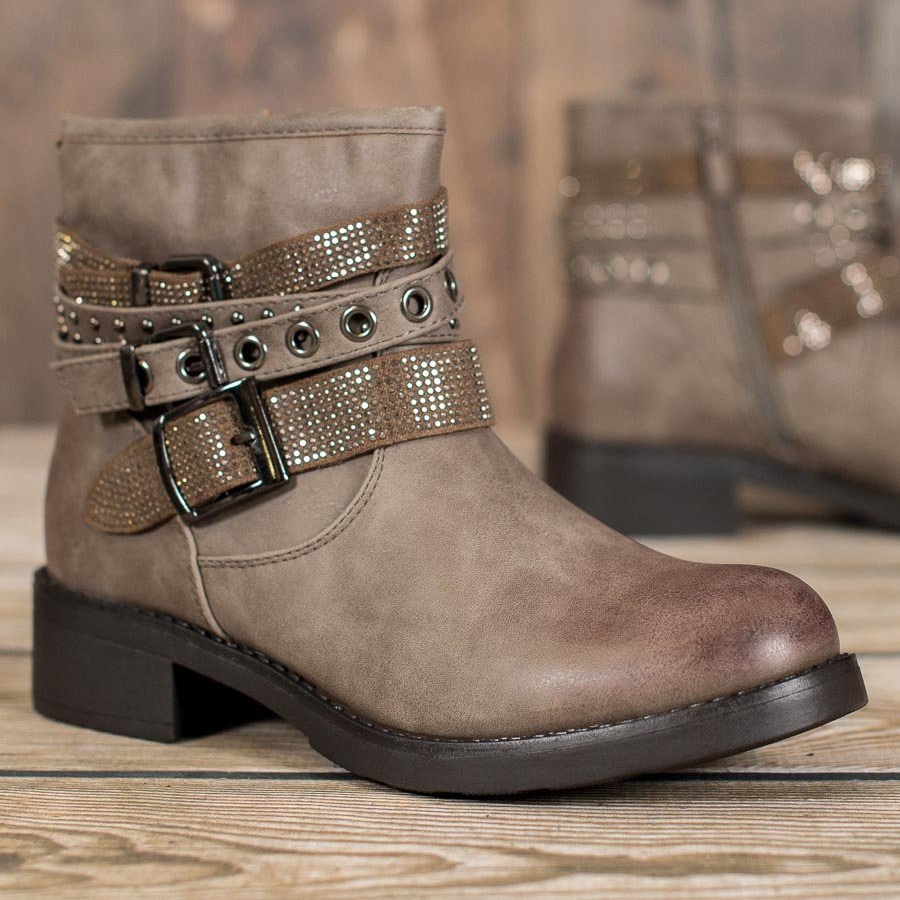 Der ausgeprägte Rock-Seele des Schuhwerks zeigt sich in sorgfältig ausgearbeiteten Details. Dekorative Schnallen, Strasssteine und Kristalle sind die Elemente, die diesen Arbeitern einen einzigartigen Charakter verleihen. Der eingearbeitete, weiche Absatz sorgt für Fußkomfort und schützt vor Abschürfungen.