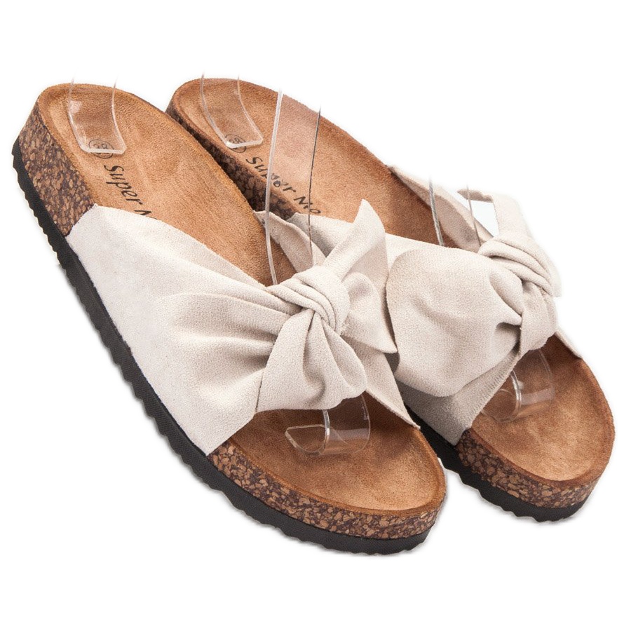 Entdecken Sie jeden Tag Stil und Komfort mit den beigefarbenen Damen-zehenstegsandalen der Marke Super Me. Diese äußerst modischen zehenstegsandalen zeichnen sich durch eine bezaubernde Schleife aus, die ihnen einen einzigartigen Charakter verleiht. Aus hochwertigem ökologischem Wildleder gefertigt, bieten sie nicht nur ein angenehmes Tragegefühl, sondern auch ein elegantes Erscheinungsbild.