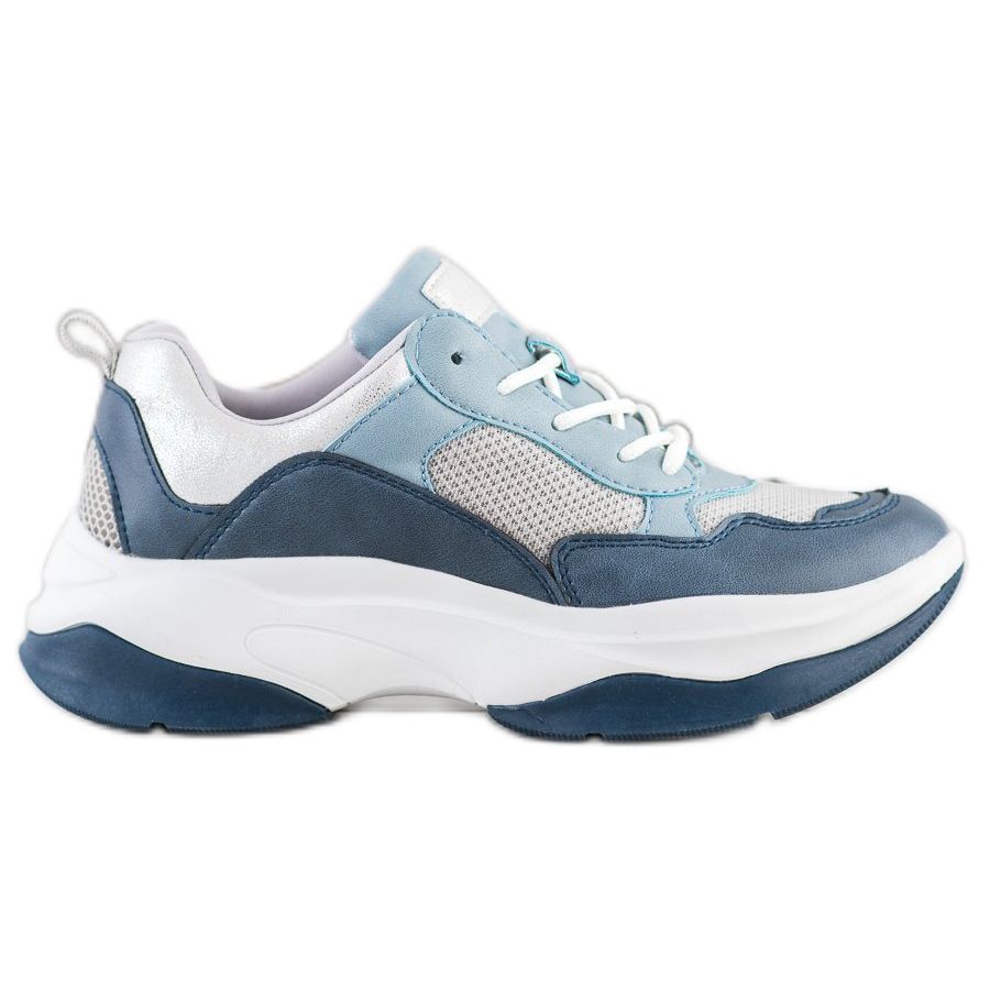 Wir präsentieren modische blaue Sneaker der Marke Kylie, die perfekt zu aktuellen Schuhtrends passen. Diese klassischen Sportschuhe aus lederimitierendem Material zeichnen sich durch ein Obermaterial aus verschiedenen Elementen in Blau- und Marineblautönen aus. Dazwischen befindet sich ein atmungsaktives Material mit kleinen Löchern, das auch bei intensiver Nutzung für Komfort sorgt.