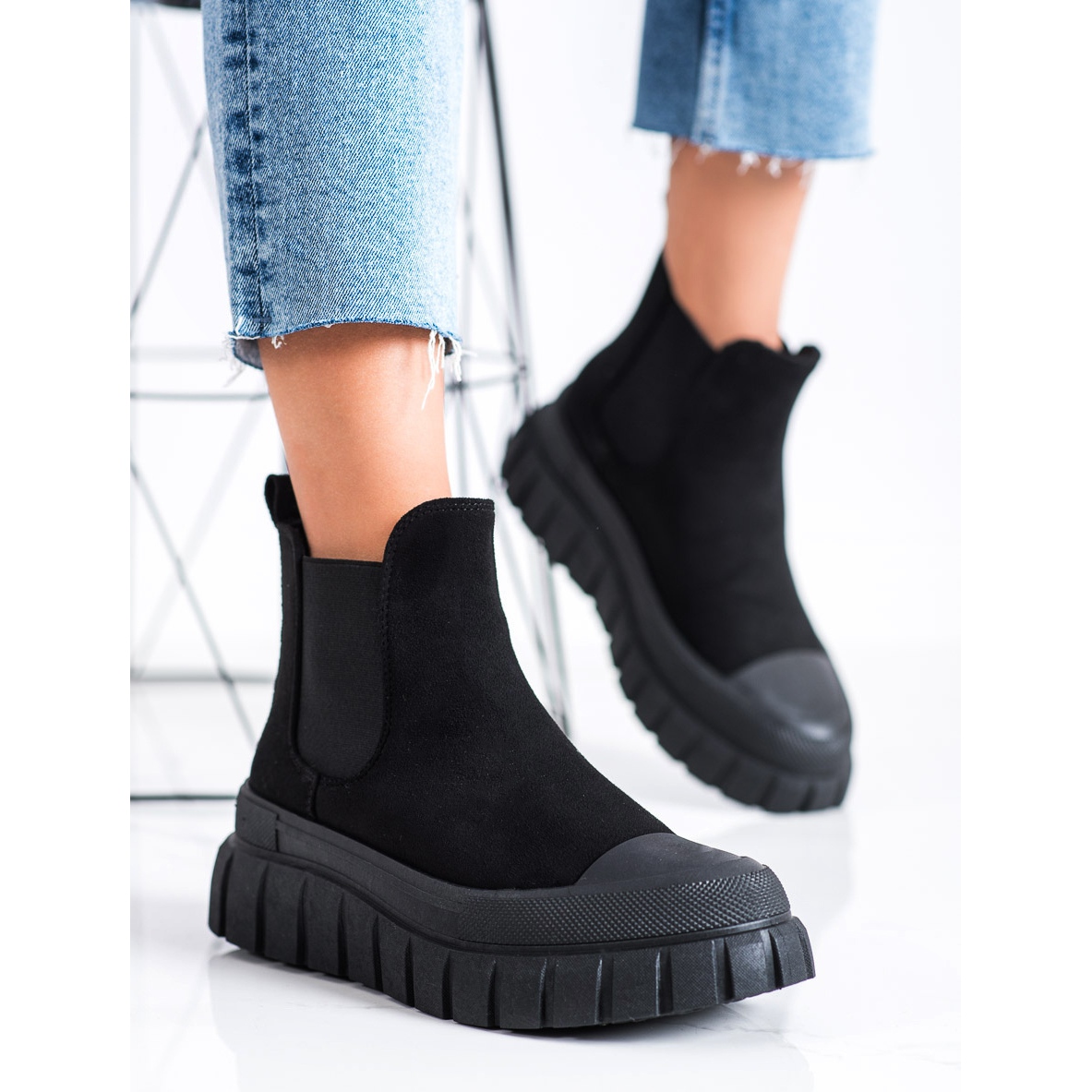 Wir laden Sie ein, modische Plateau-Chelsea-Boots von SHELOVET zu entdecken, die die perfekte Ergänzung zu jedem Alltags-Styling sind. Diese eleganten schwarzen Stiefeletten wurden für Frauen entworfen, die Komfort mit einem modischen Look verbinden möchten.