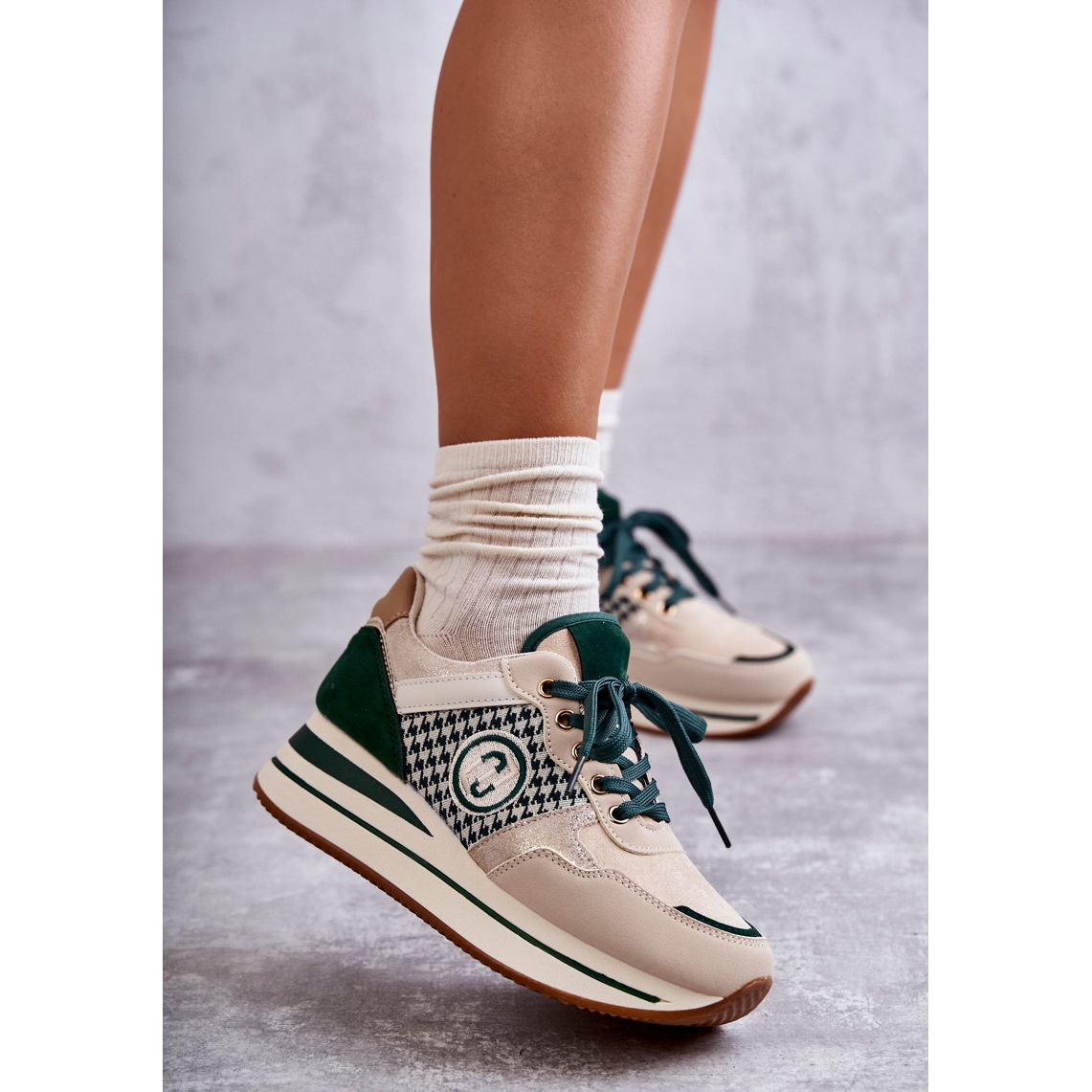Details: FB2 Modische Damen-Sportschuhe mit Keilabsatz Beige-Grün Aronne