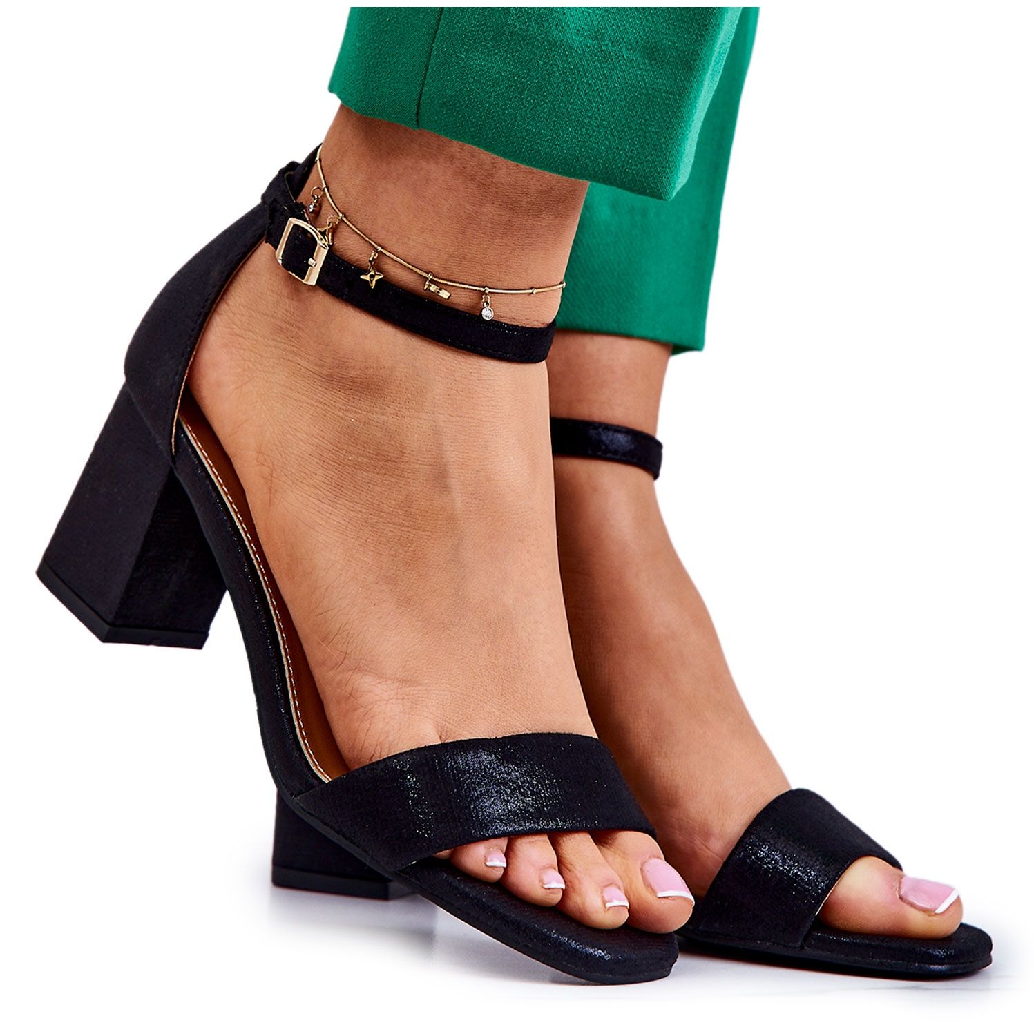 Elegante Frauensandalen aus glänzendem Stoff, die perfekt Stil und Komfort verbinden. Ein stabiler, breiter Pfosten (ca. 7 cm) liefert einen bestimmten Schritt, und der weiche ökologische Ledereinsatz sorgt auch beim längeren Tragen Komfort. Das Modell hat eine versteifte Ferse, eine offene Nase und eine Beule mit einer Schnalle am Knöchel - perfekt für Hochzeiten, Partys und Sommerausflüge. Sie mischen sich gut mit eleganten Kleidern und Hosen.