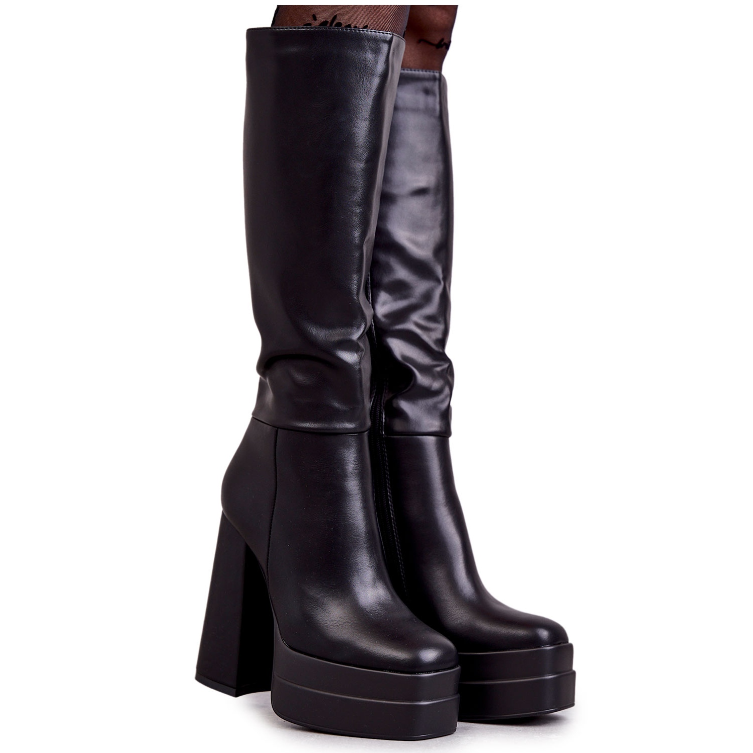 Dank des massiven 13 cm hohen Absatzes wird jeder Schritt in diesen Stiefeln zum Vergnügen und die Stabilität sorgt für einen sicheren Schritt. Eine versteifte Fersenkappe und ein Reißverschluss über die gesamte Schaftlänge (36 cm hoch) erleichtern das An- und Ausziehen der Schuhe.