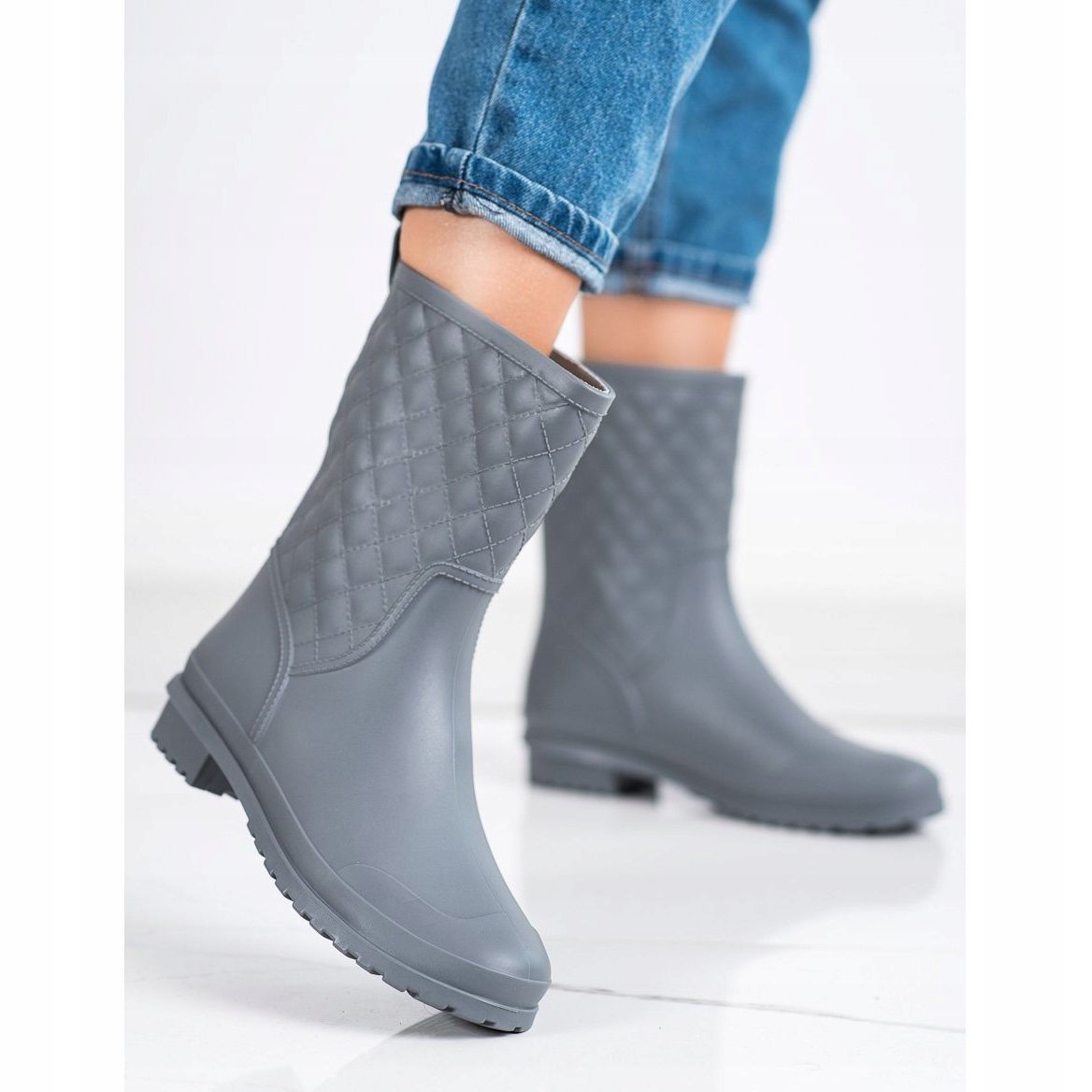 **SHELOVET Modische gesteppte Gummistiefel Grau**