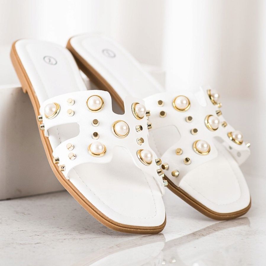 Details: SHELOVET Modische Hausschuhe mit Strasssteinen weiß