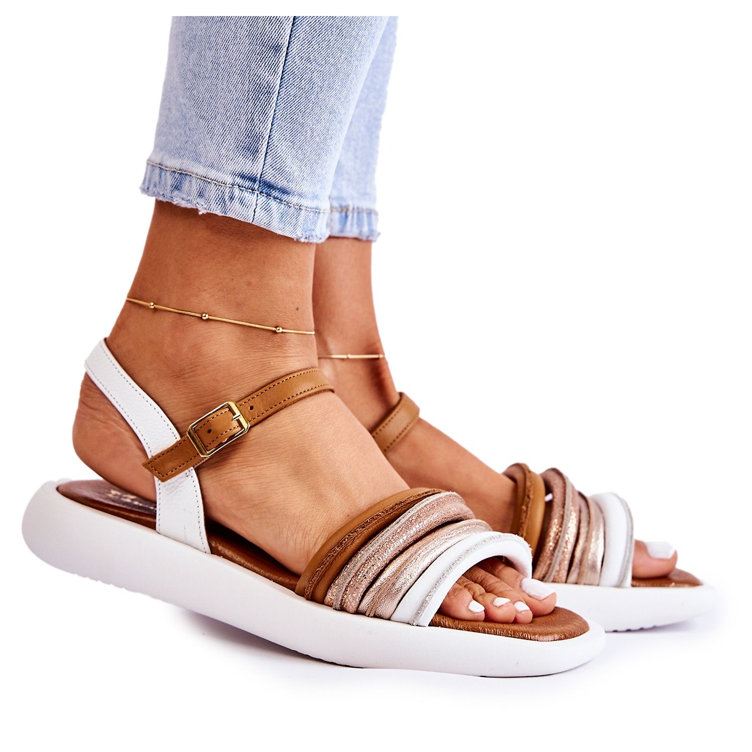Maciejka Modische Leder Damen Sandale Maciejka 05561-11 Weiß mehrfarbig