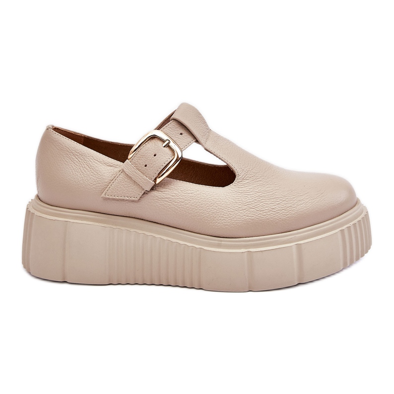 Lemar präsentiert uns ein perfektes Beispiel für die Kombination von Komfort mit einer eleganten Note – Modische Lederschuhe auf massivem Plateau Beige Colson sind ein Angebot für Frauen, die Wert auf hohe Qualität und aktuelle Modetrends legen. Diese Schuhe sind eine Mischung aus Gehkomfort und einem stilvollen Look, der sowohl im Alltag als auch bei formelleren Anlässen gut funktioniert.