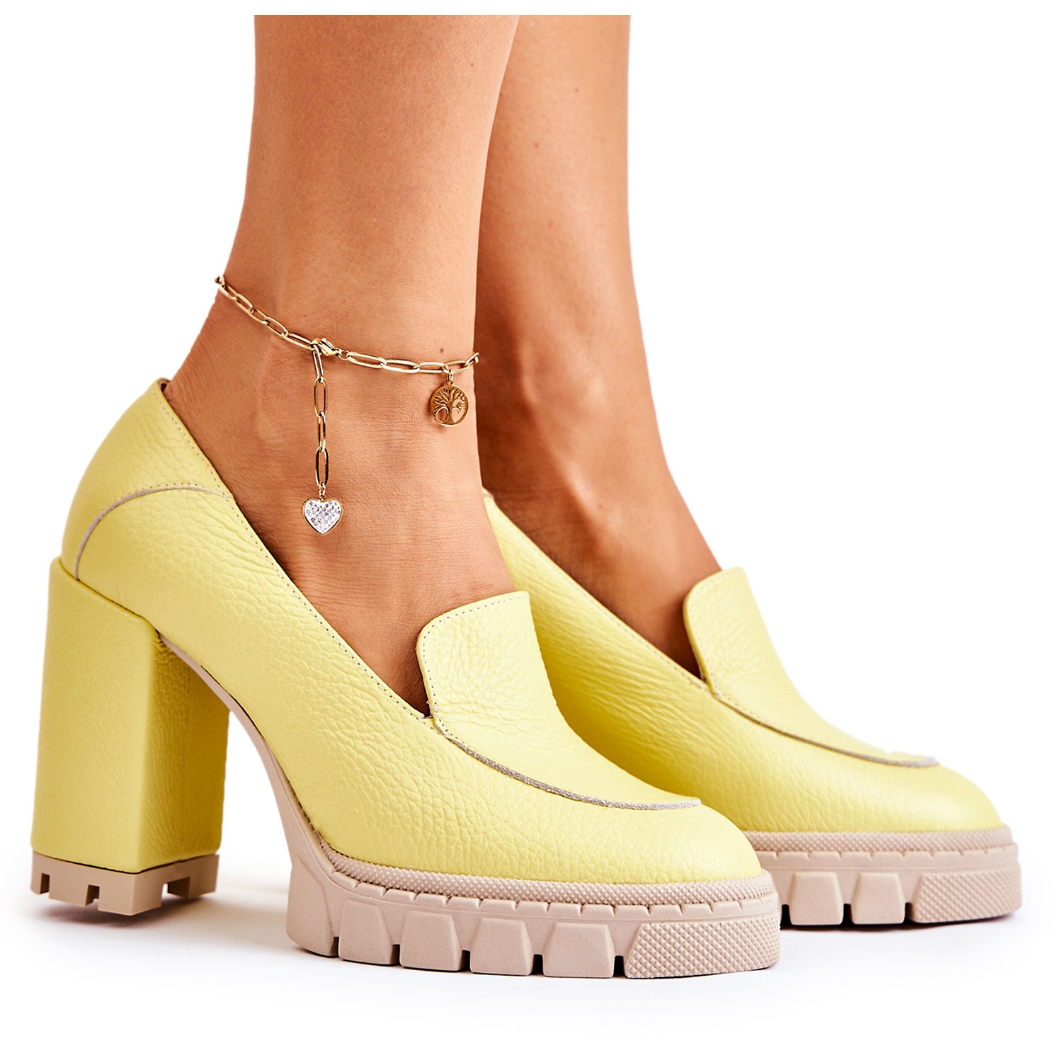 Entdecken Sie Klassik und Moderne in einem – Modische Pumps auf massivem Plateau in Gelb der Marke Margott. Diese eleganten Pumps fallen nicht nur durch ihr modisches Design auf, sondern auch durch den Komfort, den sie dank praktischer Lösungen bieten. Sie haben einen Blockabsatz und eine stabile Plattform und sorgen für Komfort und Sicherheit bei jedem Schritt.