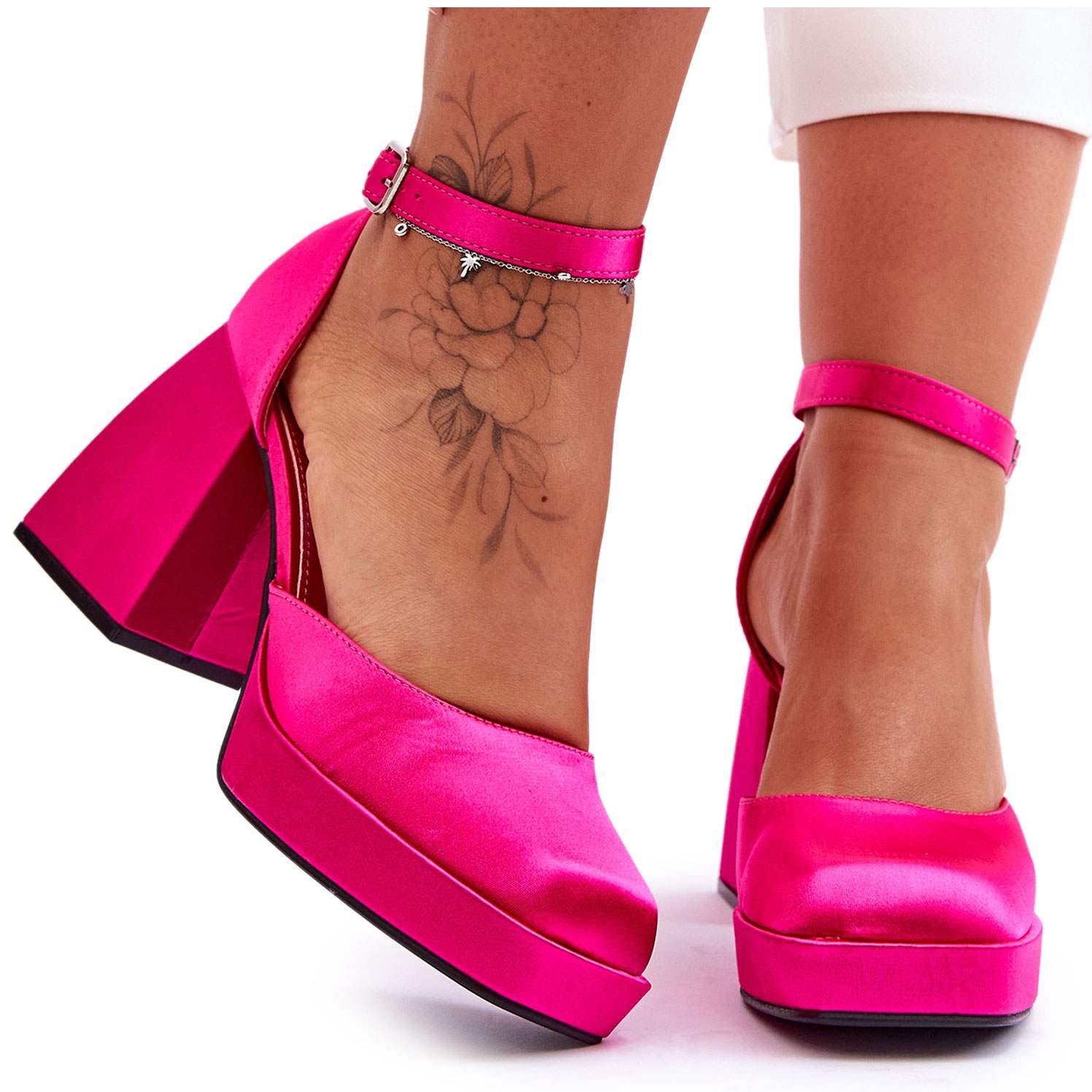 Der einzigartige Charakter der Pumps wird durch ihre satte rosa Farbe unterstrichen, die zu den Trends der Saison passt und jedem Styling Charme verleiht. Diese Schuhe sind auf einem stabilen Plateau und einem massiven Blockabsatz mit einer Höhe von 9,5 cm montiert, was nicht nur für ein beeindruckendes Aussehen, sondern auch für Komfort beim Gehen sorgt. Aus hochwertigem Textilmaterial gefertigt, sind diese Pumps nicht nur ein Hingucker, sondern versprechen auch Langlebigkeit und Widerstandsfähigkeit im täglichen Gebrauch.