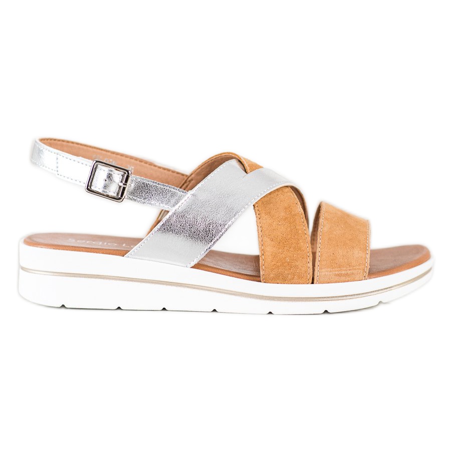 Die aus hochwertigen Materialien gefertigten Sandalen kombinieren 50 % Kunstleder und 50 % Wildlederimitat, was sie nicht nur ästhetisch, sondern auch sehr bequem macht. Im Inneren befindet sich ein ökologischer Ledereinsatz, der sie leicht und angenehm zu tragen macht. Eine 3 cm hohe Kunststoffsohle mit Profil sorgt für Stabilität bei jedem Schritt.