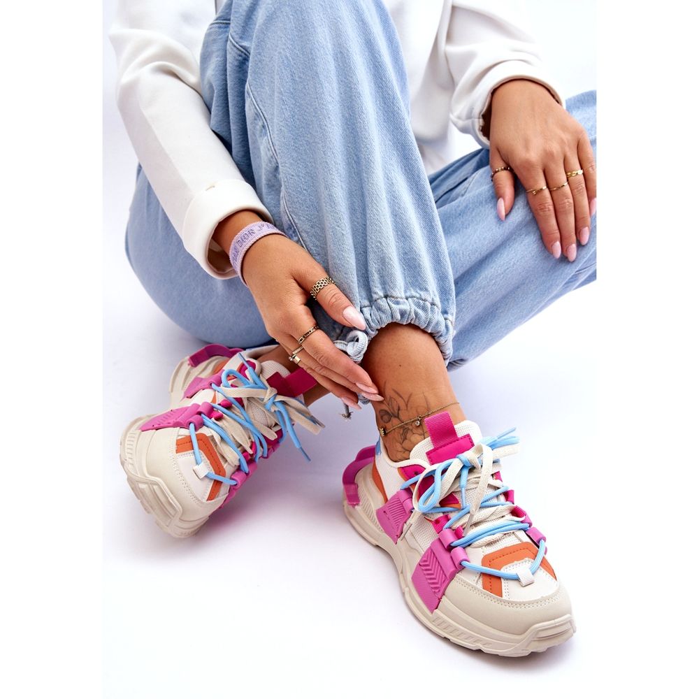 Diese eleganten Turnschuhe in Beige und rosa Farben passen perfekt zu verschiedenen Stylisations-von-Sportarten zu Casual. Dank des Mangels an Erwärmen sind sie an wärmeren Tagen großartig und ihre runde Nase verleiht ihnen Charme.