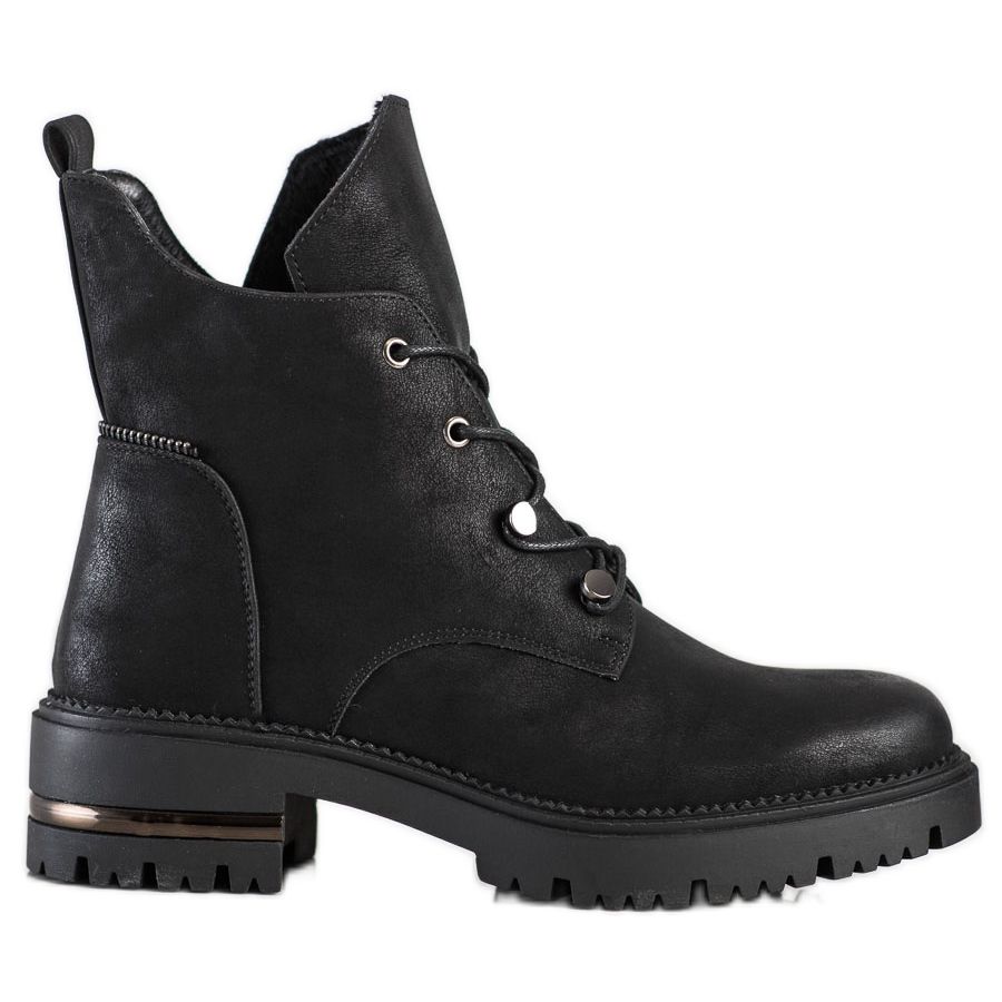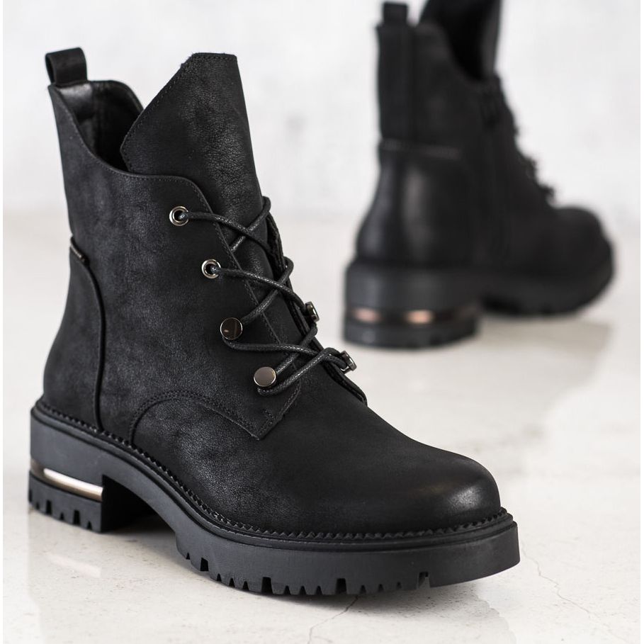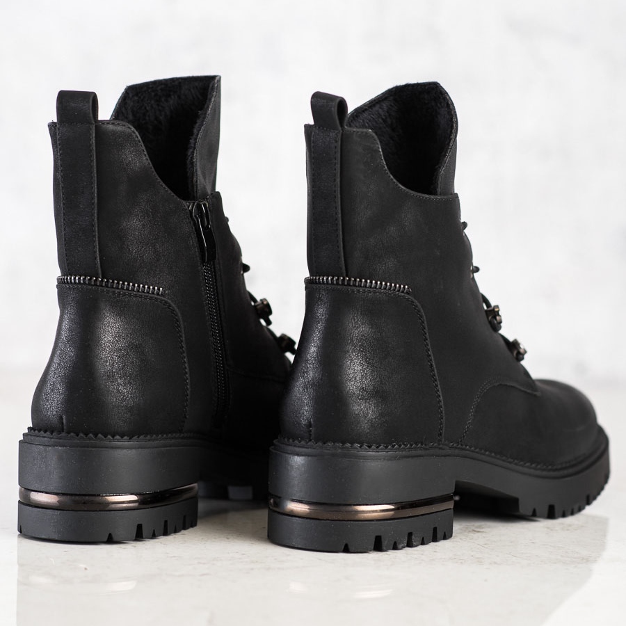Sie sind in der modischen, musterlosen schwarzen Farbe erhältlich und eine perfekte Ergänzung für jede Garderobe. Die obere Höhe von 15 cm reicht bis über den Knöchel, was Charakter verleiht. Weitere Vorteile sind ein praktischer Reißverschluss und Schnürverschlüsse, die eine perfekte Passform am Fuß ermöglichen.