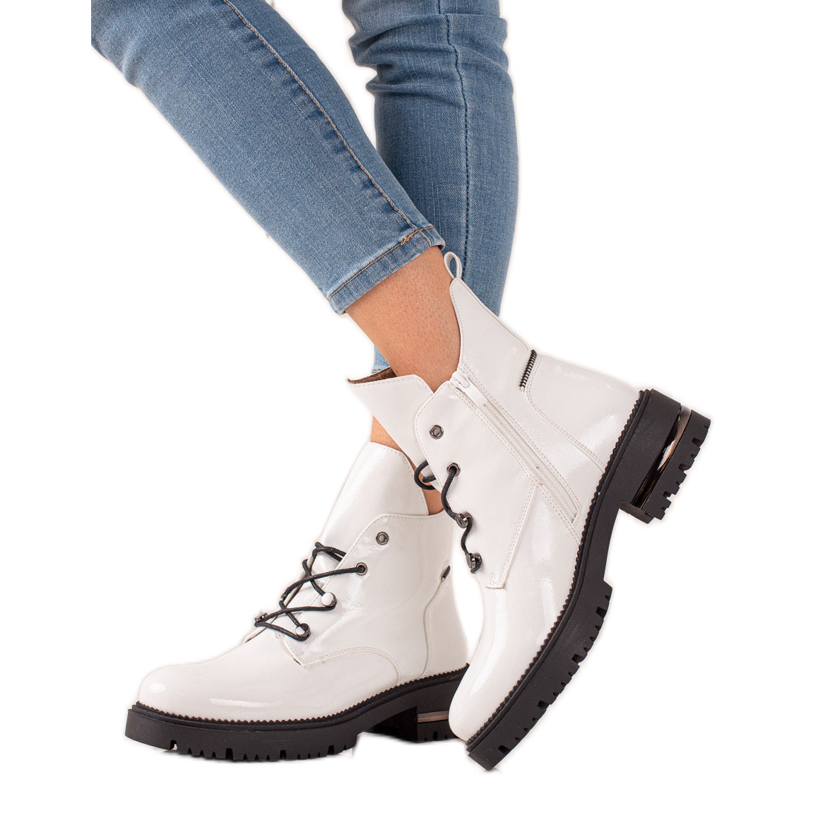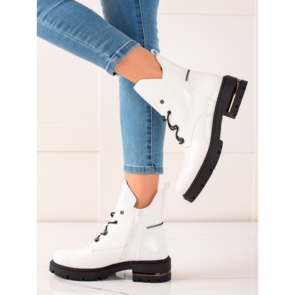 Wir präsentieren modische Sergio Leone-Schnürschuhe in elegantem Weiß, die eine perfekte Ergänzung zu jedem Herbst- und Winter-Styling darstellen. Diese stilvollen Stiefeletten, die speziell für Frauen entwickelt wurden, kombinieren lässigen Stil mit den neuesten Modetrends.