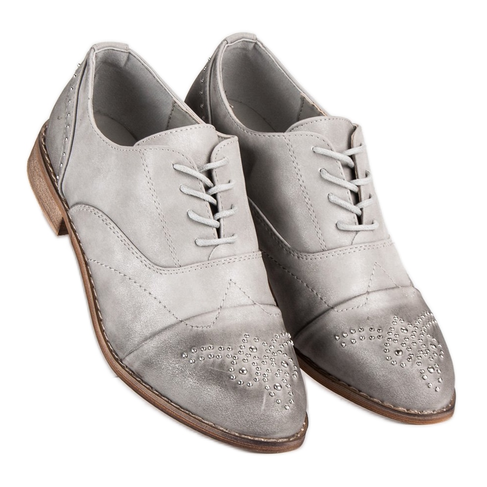 Dank ihrer grauen Farbe, angereichert mit zarten Abnutzungen, lassen sie sich leicht mit verschiedenen Outfits kombinieren. Durch die Verzierung mit Strasssteinen gewinnen die Schuhe an Charakter und verbinden klassische Eleganz mit modernen Akzenten. Vorne geschnürt sorgt dieses Modell für eine perfekte Passform, eine flache 2,5 cm hohe Sohle sorgt für angenehmen Tragekomfort den ganzen Tag.