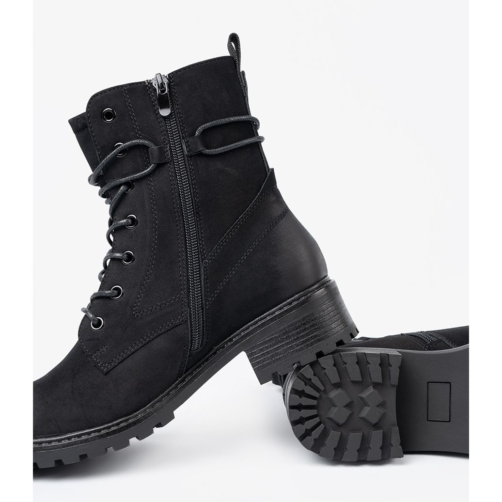 Entdecken Sie das neueste Modell von Shelvt - modische schwarze Arbeiter mit dekorativer Schnürung, die perfekt in die Trends des Freizeit- und Rockstils passt. Diese einzigartigen Frauenstiefel verbinden Eleganz mit Komfort, was sie jeden Tag zu einer großartigen Wahl macht, sowohl im Frühjahr, Herbst und Winter ".