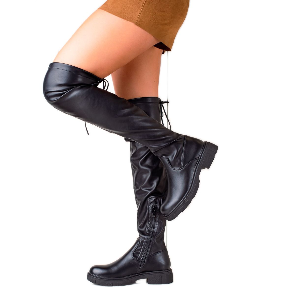 Details: Seastar Modische schwarze Stiefel mit Öko-Leder