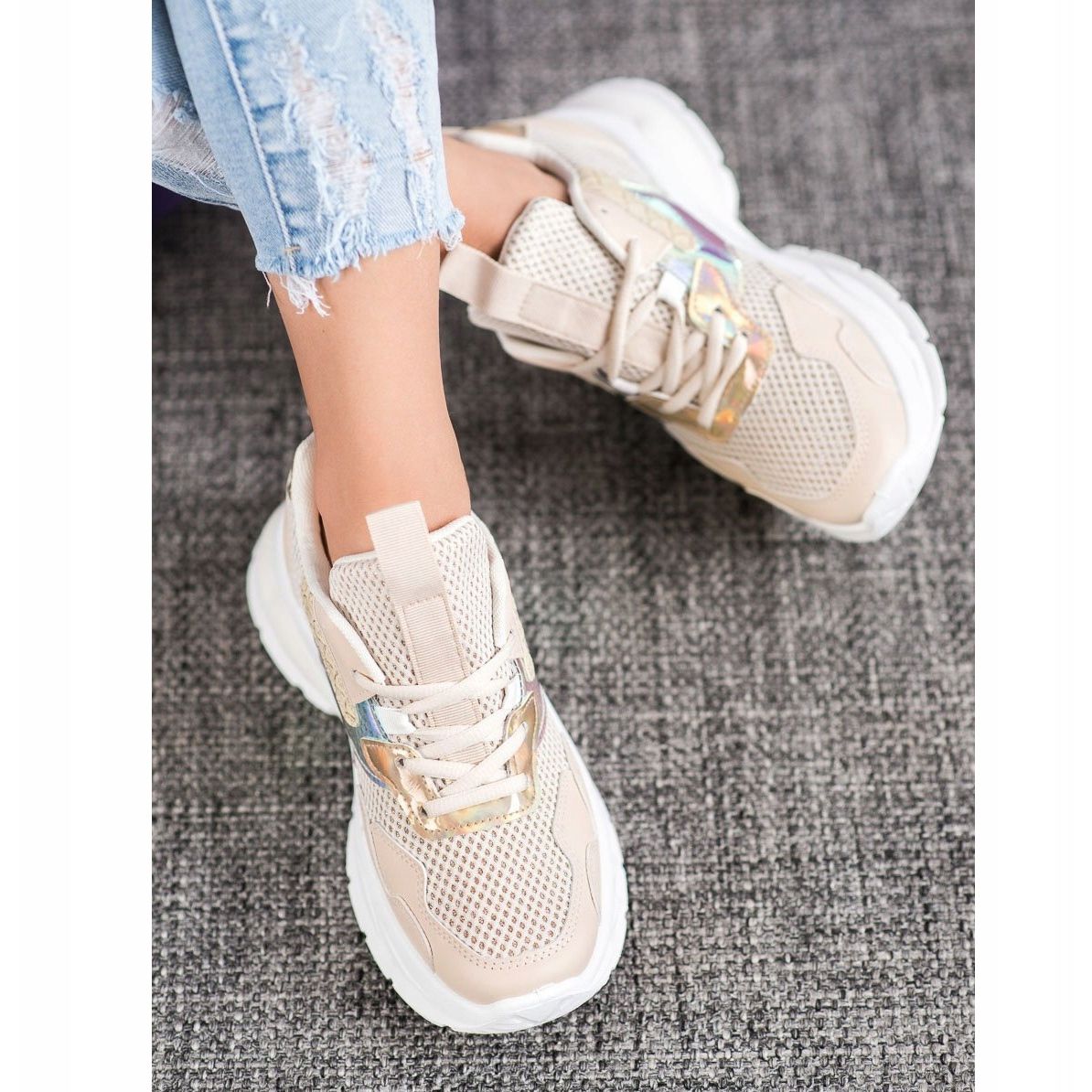 Die braune Farbe mit schimmernden, bunten Einsätzen in verschiedenen Formen macht diese Schuhe nicht nur funktional, sondern zeichnet sich auch durch einen modischen Modestil aus. Die Gummisohle mit Profil sorgt für guten Halt und die Plateauhöhe von 5,5 cm sorgt für etwas Charakter, ohne den Komfort einzuschränken.