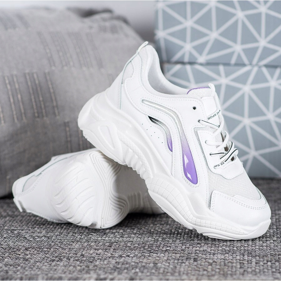 Ästhetisch zeichnet sich dieses Modell durch einen weißen Farbton des Obermaterials aus, der mit einem violetten Akzent verziert ist, was ihm einen einzigartigen Charakter verleiht. Die universelle weiße Farbe macht sie zu einer vielseitigen Ergänzung zu vielen Sets – von lässigen Jeans und Sweatshirts bis hin zu eleganteren Röcken und Kleidern.