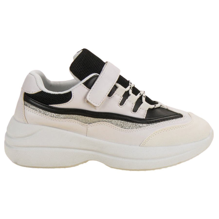 Wir präsentieren modische schwarz-weiße Sneaker, die Stil, Komfort und Funktionalität vereinen. Diese Sneakers eignen sich perfekt für lange Spaziergänge und bieten dank ihres 5,5 cm hohen Plateaus Komfort. Sie zeichnen sich sowohl durch eine Schnürung als auch durch einen praktischen Klettverschluss aus, der das Anziehen erleichtert und eine perfekte Passform am Fuß ermöglicht.