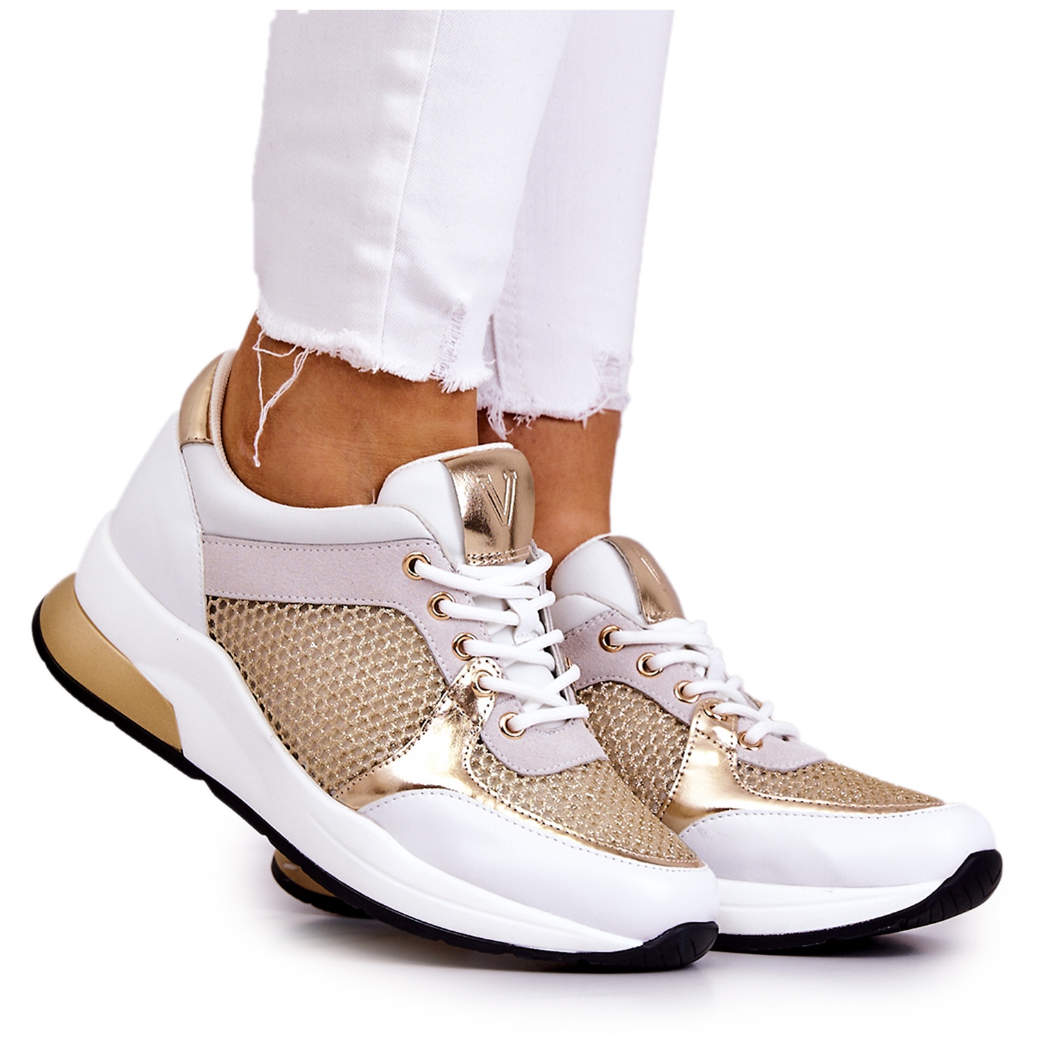 Moderne, leichte Sneakers Vincez Danielle kombinieren einen sportlichen Charakter mit einem eleganten Akzent. Die Oberseite der Schuhe besteht aus glänzendem Mesh und Eco -Leder mit subtilen, goldenen Details, die jeder Stylisierung Stil verleihen. Ein empfindlicher Keil und eine plattformübergreifende Plattform verlängern die Figur optisch, und der ökologische Ledereinsatz sorgt den ganzen Tag von Komfort.