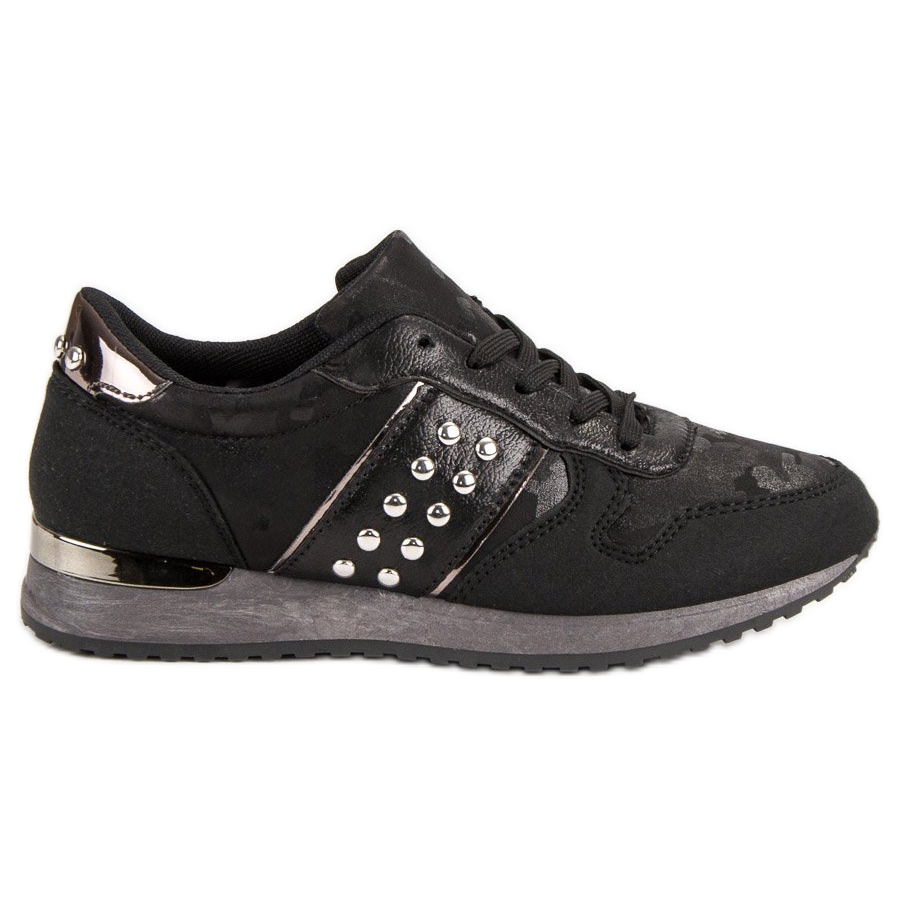 Stilvolle und bequeme Sportschuhe in Schwarz und Grau sind eine ideale Wahl für aktive Frauen, die sowohl Wert auf Komfort als auch auf ein modisches Aussehen legen. Diese eleganten Sneaker aus hochwertigen Materialien – Textil und ökologisches Leder – sorgen für Langlebigkeit und Haltbarkeit, wodurch sie für verschiedene Bedingungen geeignet sind.
