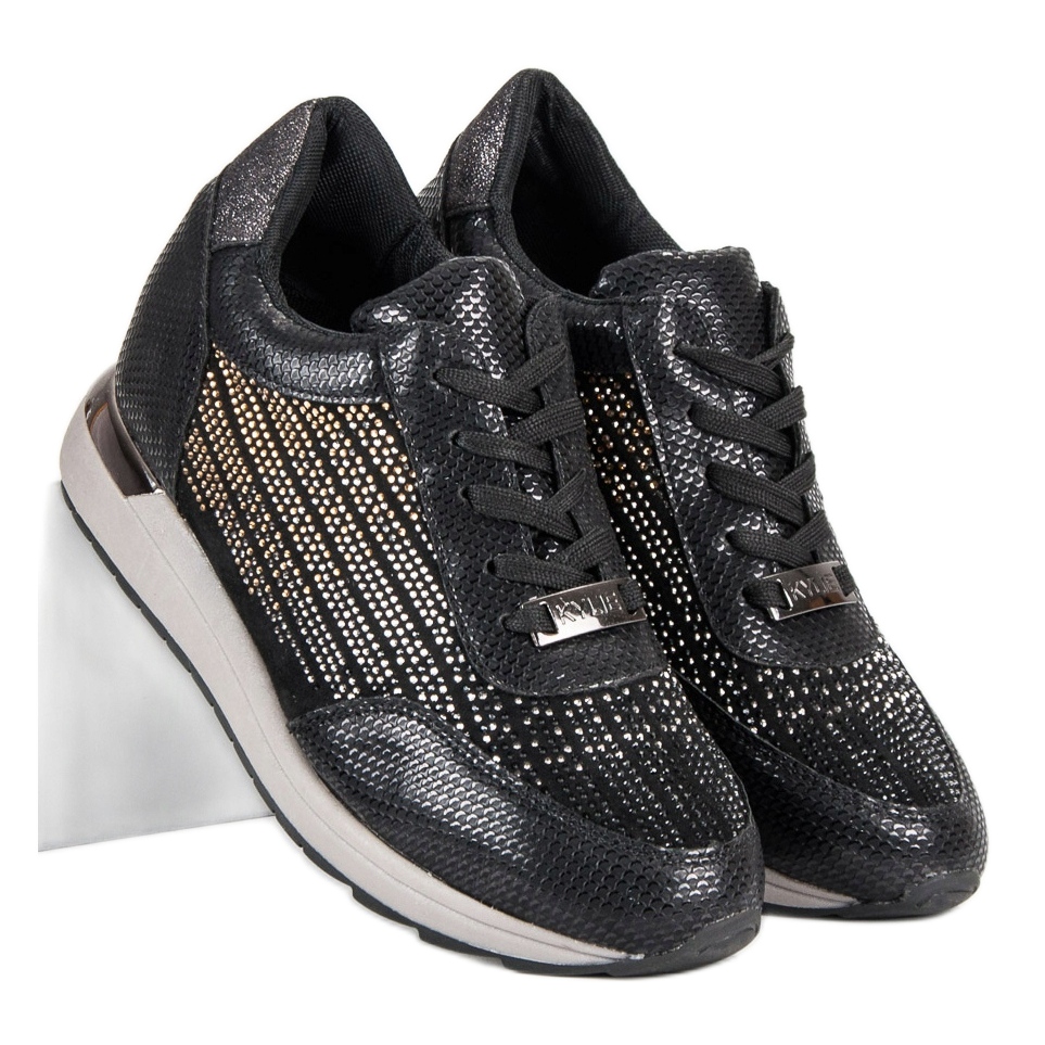 Die modischen Sportschuhe Kylie Black zeichnen sich durch eine Gummisohle mit Profil aus, die unabhängig von der Aktivität für hervorragenden Halt und Stabilität sorgt. Die runde Spitze sorgt für Leichtigkeit und zusätzliche Elemente, wie Strasssteine und Strasssteine, verleihen den Schuhen einen einzigartigen Charakter und modischen Ausdruck.