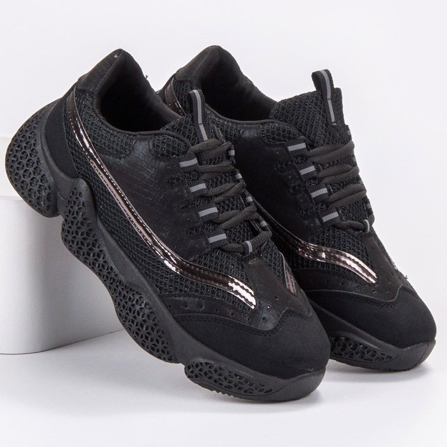 Die modischen schwarzen Sportschuhe von SHELOVET sind ein ideales Angebot für Frauen, die Wert auf Komfort und modernen Stil legen. Diese einzigartigen Sportschuhe zeichnen sich durch einen dekorativen, glänzenden Riemen aus, der ihnen Eleganz und Originalität verleiht. Dank der dicken Sohle aus synthetischem Material isolieren die Schuhe den Fuß perfekt vom Boden, was für Komfort bei alltäglichen Spaziergängen und Aktivitäten sorgt.